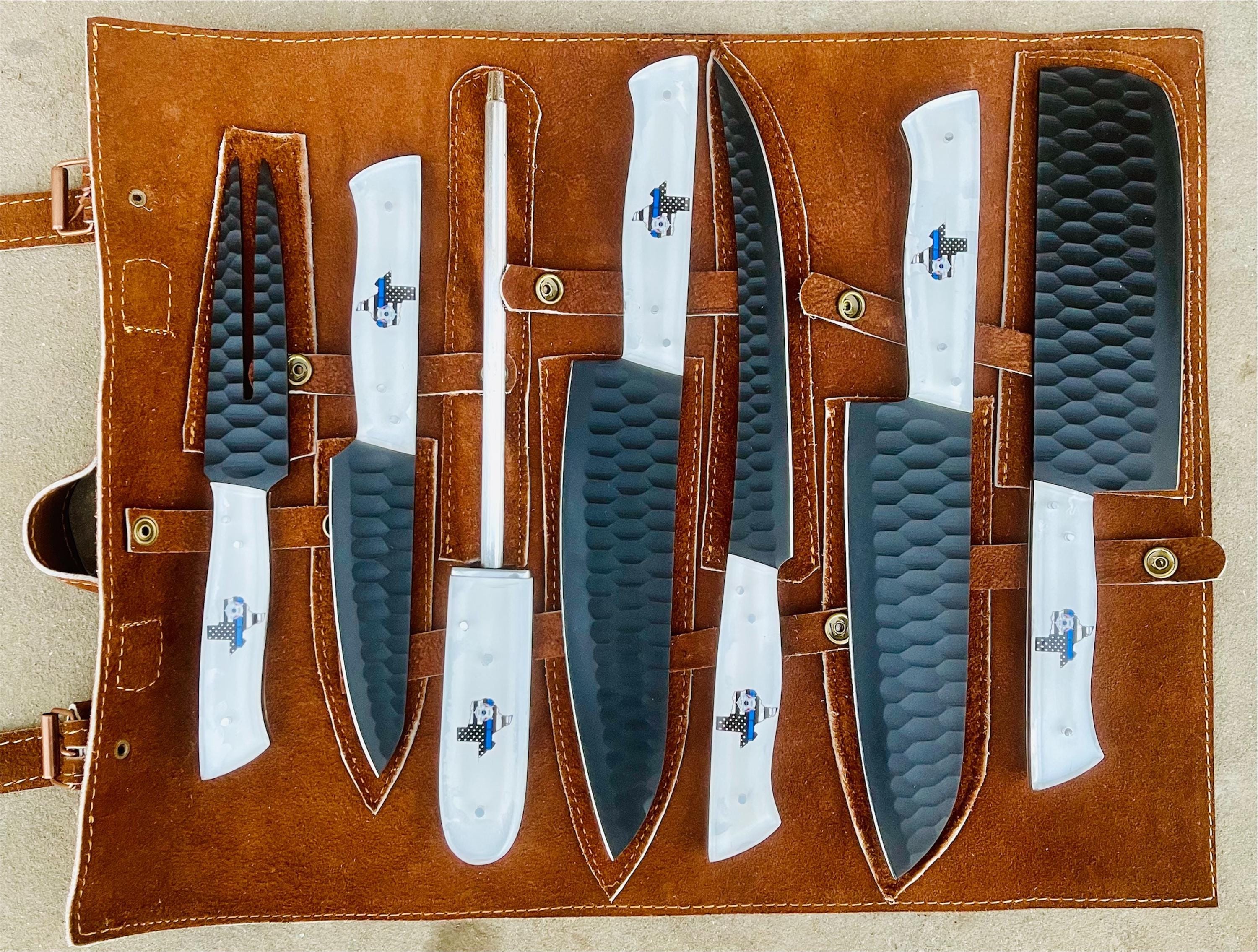 Custom Handmade D2 Steel TEXAS Real Flag Kitchen BBQ 7 PCS Chef Knives Set