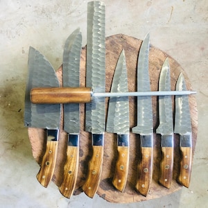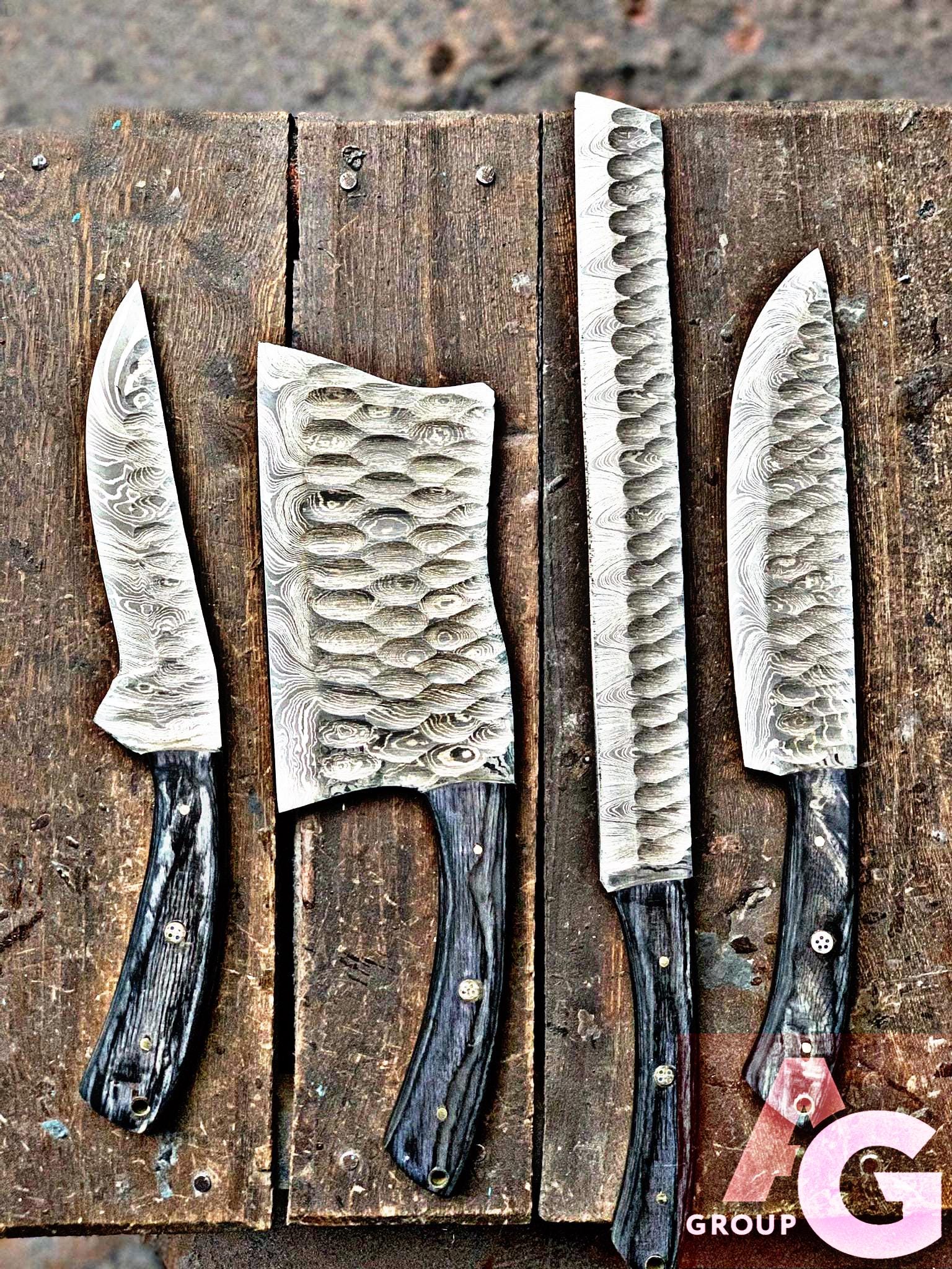 Custom Handmade Damascus Steel Kitchen BBQ 4 Pcs Black Dark Chef Knives Set Overall Length: 10.5 to 14 '' Inches Handle Length: 5.0'' Inches Handle Material : Black Dark Blade Material: Damascus Steel Sweet Leather Roll Kit Excellent husband wife gift Wedding gift Father's Day gift Mother's Day gift Birthday Gift Groomsmen gift Christmas gift Best Knife Gift Luxury Handmade Gifts