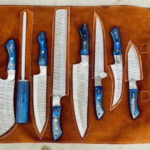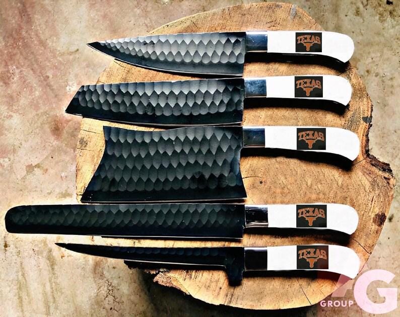 Custom San Francisco 49ers Hand-Forged Chef Knife Set – Hammered Steel Kitchen Knives