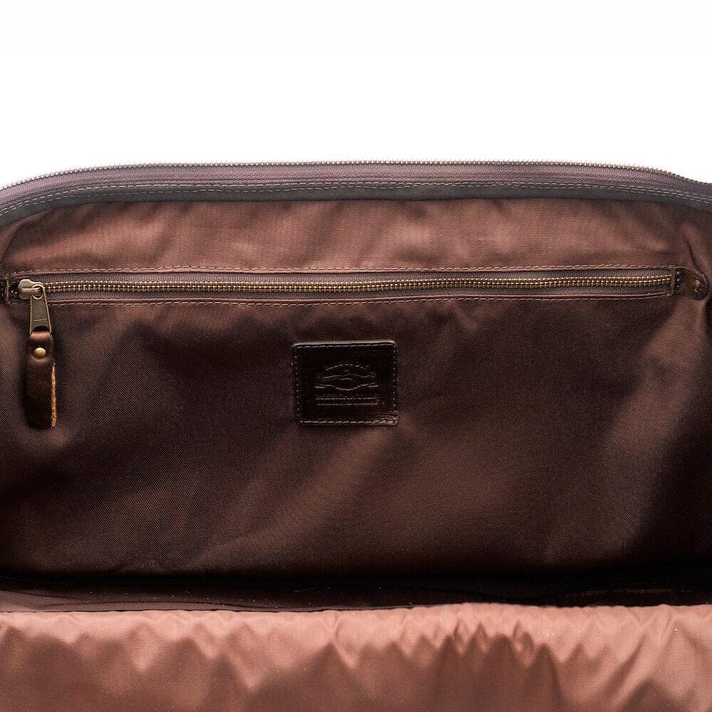 Meets all major carry-on luggage requirements. Triple layered leather on bottom corners for super-durability to ensure your Theodore withstands anything your adventures dish out Spacious interior with 2 leather bound pockets Additional large interior antique brass metal zippered pocket Durable 430D easily cleanable nylon lining Rugged wheels and handle provide long-life and miles of use Strong, collapsible handle Solid copper rivets at all stress points Mission Mercantile Lifetime Promise Dimensions: 8" H x 21" L x 12" W Volume: 33 L Weight: 9 lbs Thick, supple full-grain Pakistan steerhide leather All Mission Mercantile leathers are sourced from a Gold Rated tannery certified by the Leather Working Group (LWG), an international organization that works to ensure sustainable environmental practices in the leather industry. Durable 430D easily cleanable nylon lining Rugged wheels and handle provide long-life and miles of use Strong, collapsible handle The very best strong UV and weather resistant marine grade German-spun polyester thread YKK antique brass metal hardware & zippers with leather pulls Solid copper rivets at all stress points.....