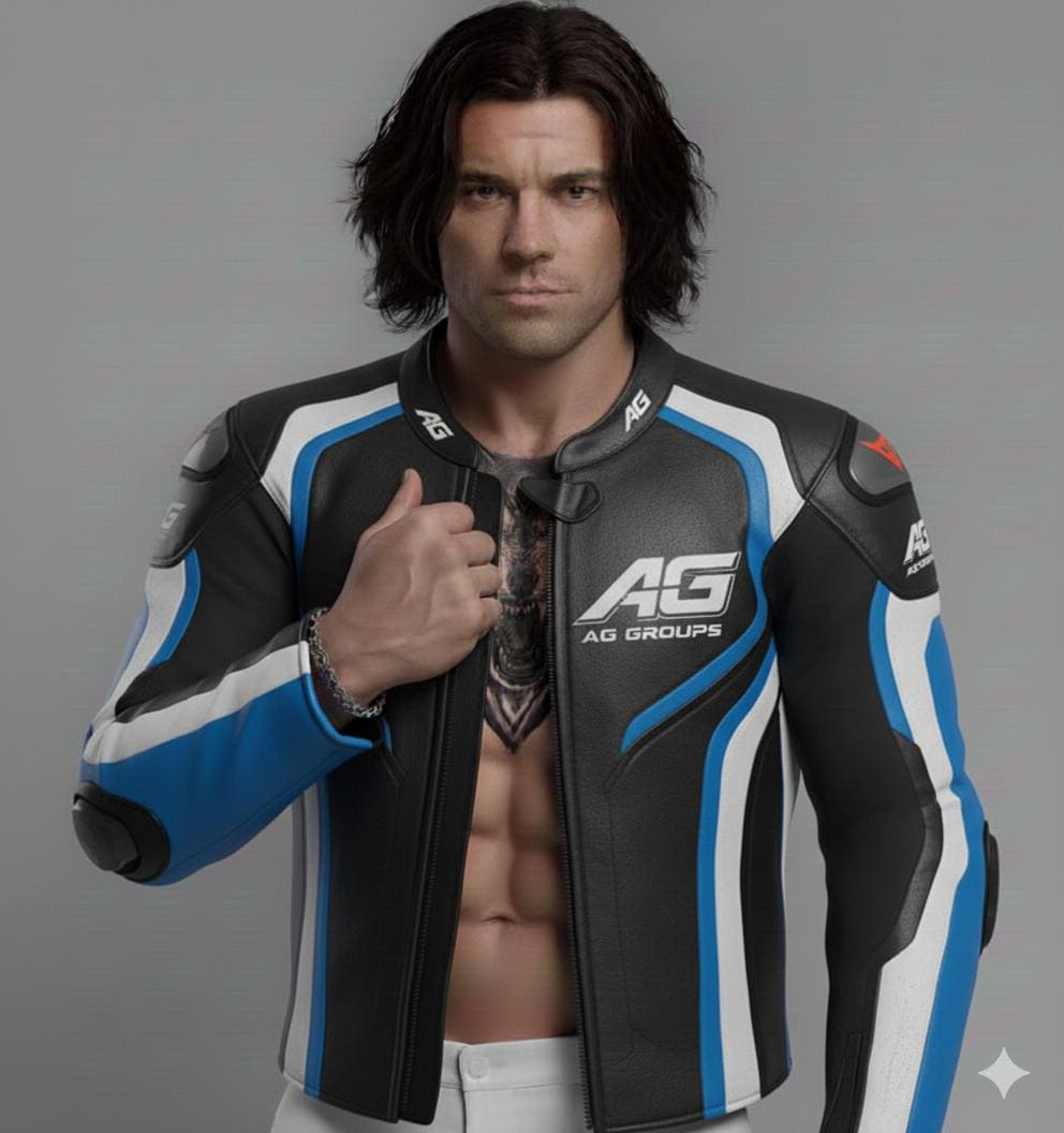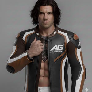 The jacket is made of leather. This material is commonly used for motorcycle and racing jackets because it offers superior abrasion resistance, which provides essential protection in case of high-speed crashes. Design and Features Style: The jacket has a black and white color scheme with large white stripes and logos, giving it a classic racing aesthetic. Protection: It is designed for safety, likely featuring CE-approved armor in critical areas like the shoulders and elbows, as is standard for professional-grade motorcycle gear. The high collar also offers extra wind protection. Comfort: The design likely includes features for comfort during rides, such as a mesh lining for breathability, pre-curved sleeves for an aggressive riding posture, and stretch panels for better mobility. Hardware: It uses durable materials such as original YKK zippers, which are standard in high-quality riding apparel. The jacket is made from genuine leather. For heavy-duty use like motorcycle racing, this is typically a thick, high-quality full-grain cowhide leather, prized for its excellent abrasion resistance and durability compared to other materials.