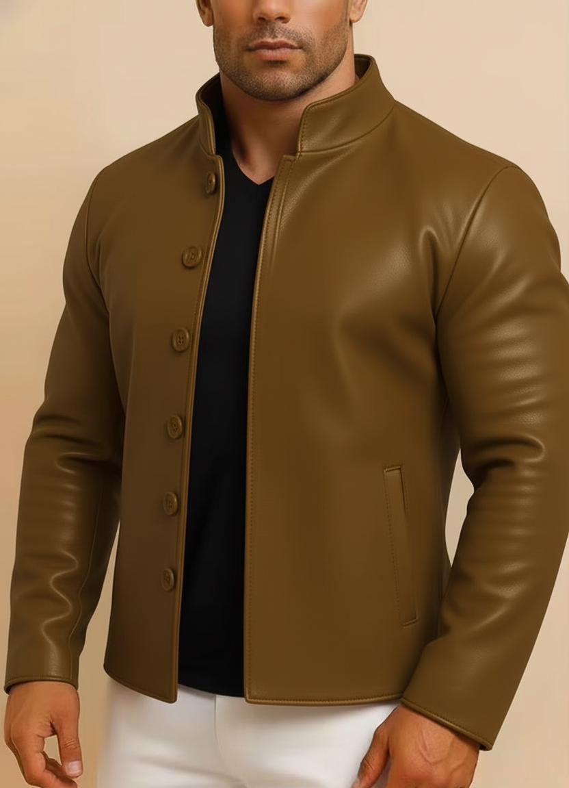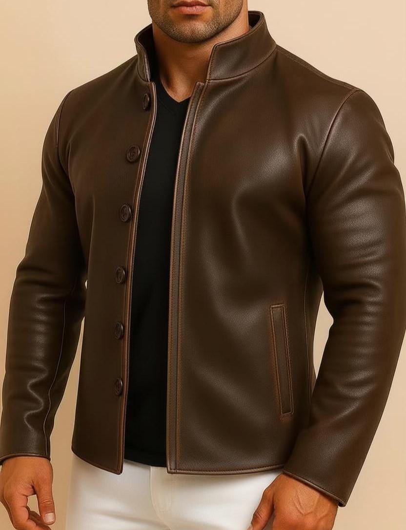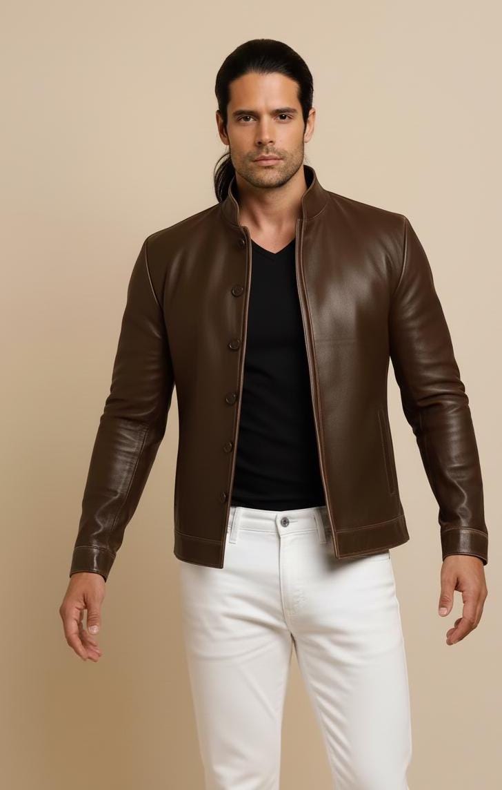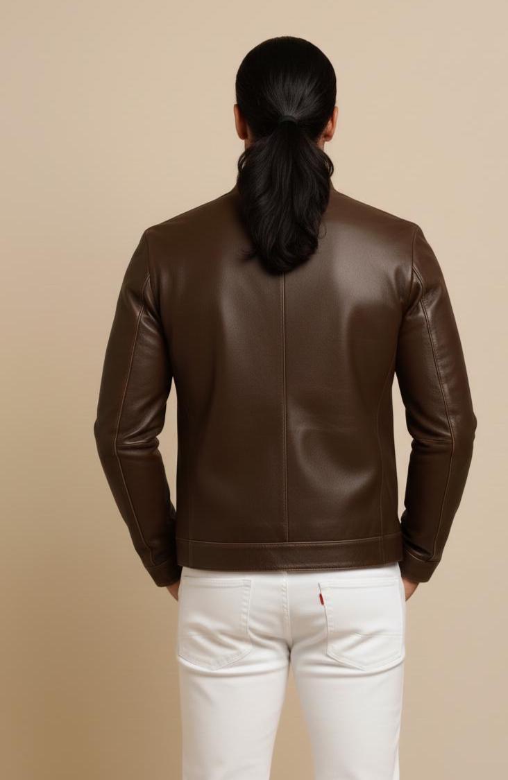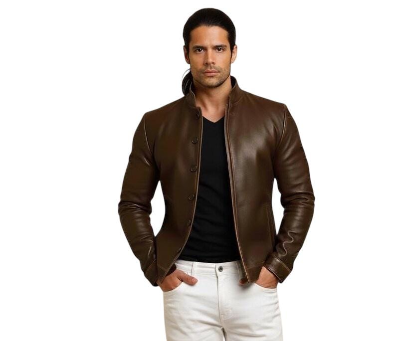 Men's Distressed Brown Sheep Leather Jacket – Mandarin Collar Biker Style