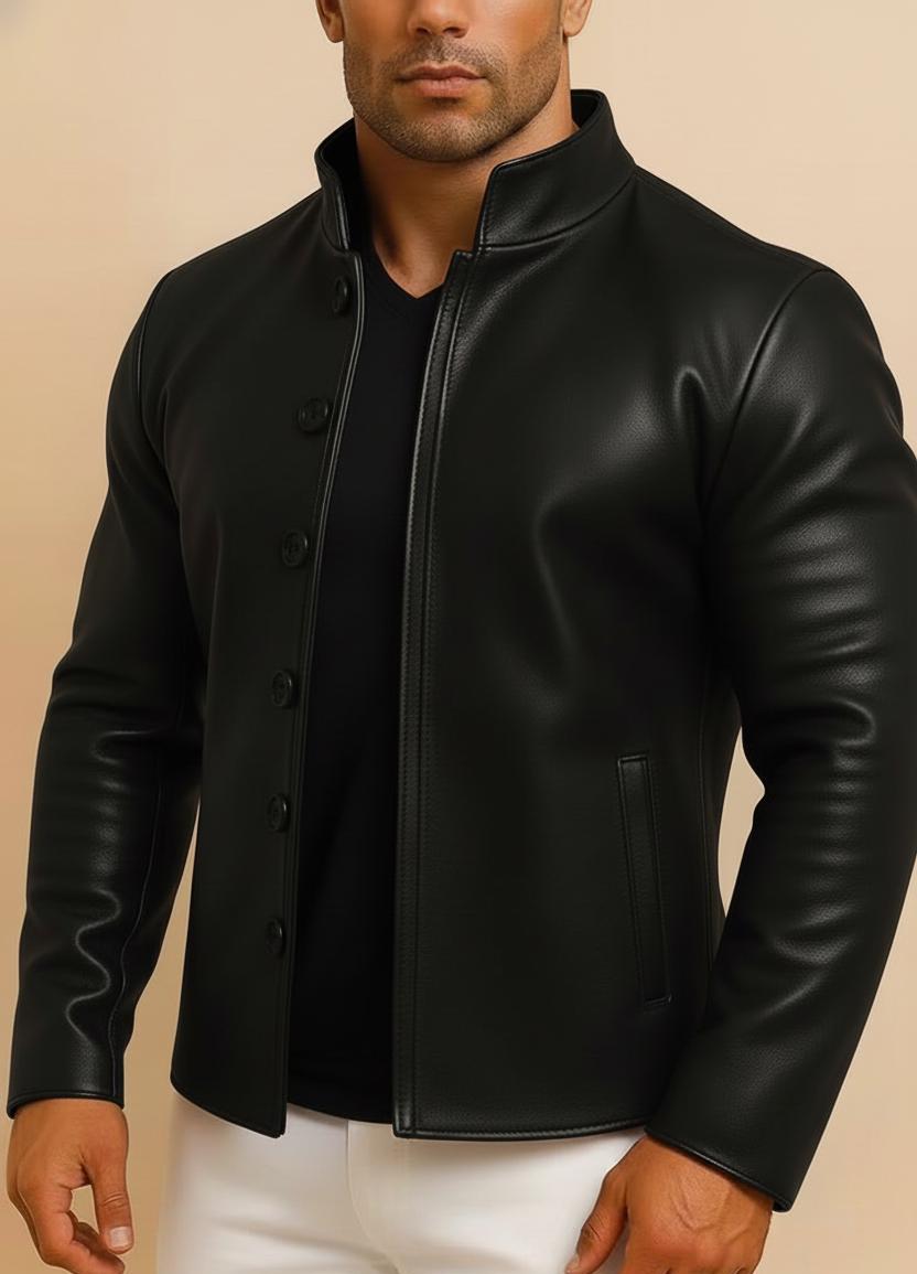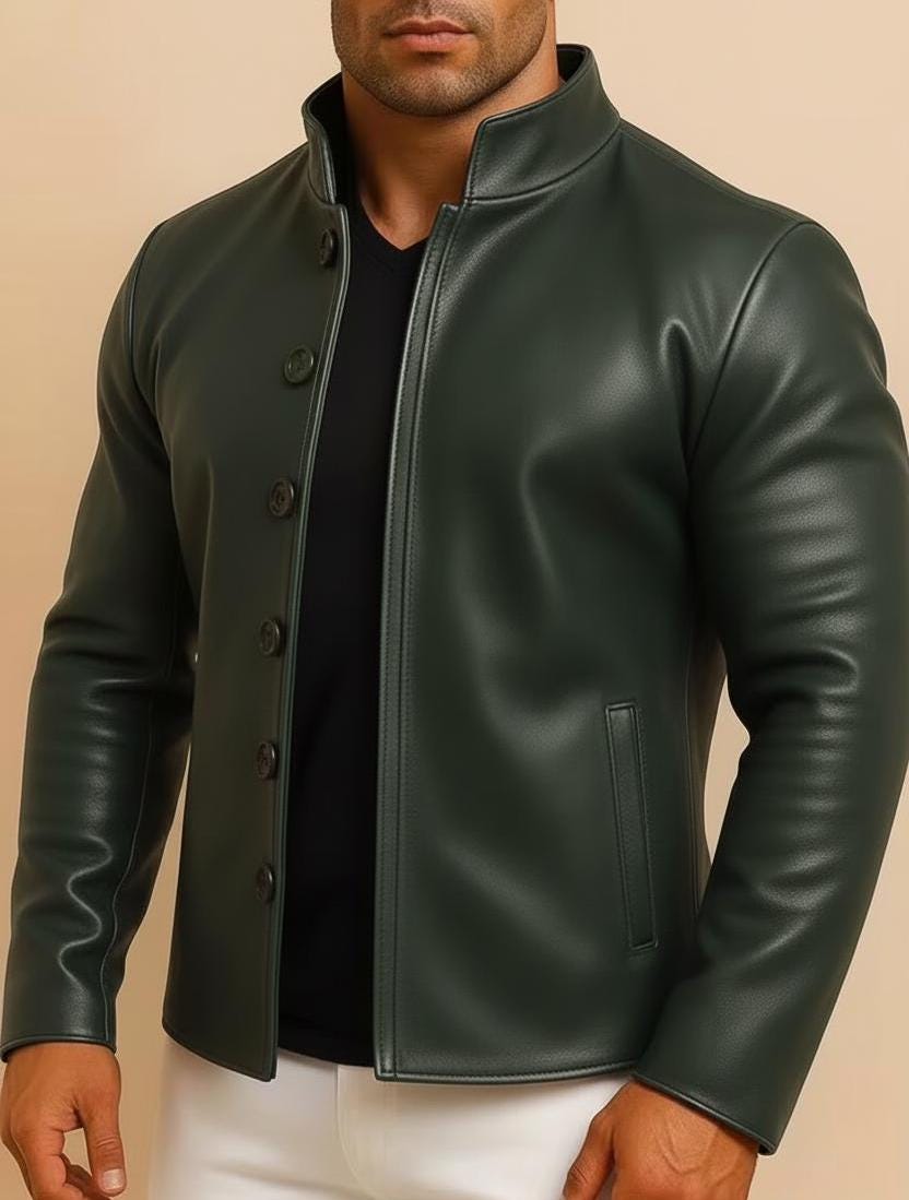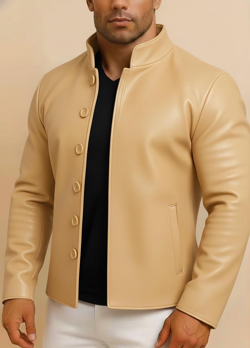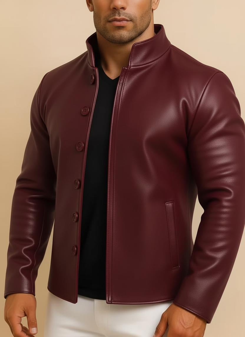 Men's Distressed Brown Sheep Leather Jacket – Mandarin Collar Biker Style