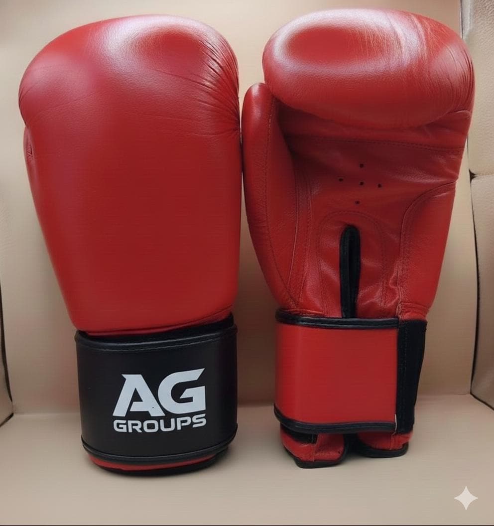 Step into the ring with confidence with these AXG New Goal Pure Leather Boxing Gloves by AG Groups, crafted for durability and superior performance. Whether you're training, sparring, or hitting the heavy bag, these gloves are designed to offer excellent hand protection and comfort. Key Features & Benefits: Premium Material: Made from high-quality, genuine cowhide leather that offers excellent durability and a superior feel. Enhanced Protection: Features multi-layered, shock-absorbing foam technology to protect your hands and knuckles during intense workouts. Secure Fit: Equipped with a thick hook and loop (Velcro) wrist closure for strong wrist support, minimizing the risk of sprains and injuries. Breathability: Includes a cool mesh system in the palm area to improve ventilation and hygiene, keeping your hands dry. Versatile Use: Ideal for boxing, kickboxing, Muay Thai, MMA training, bag work, and general fitness classes. Details: Brand: AG Groups (AXG New Goal Series) Color: Red Material: 100% Genuine Cowhide Leather Closure Type: Hook and Loop (Velcro) Available Sizes: [Insert the sizes you offer, e.g., 8 oz, 10 oz, 12 oz, 14 oz, 16 oz] Care Instructions: Wipe down with a damp cloth after each use and allow to air dry completely. Customization: Looking for a personalized touch? We offer customization! Add a name or logo to make these gloves truly yours or a perfect gift for a fighter. (Add details on how buyers can request this).