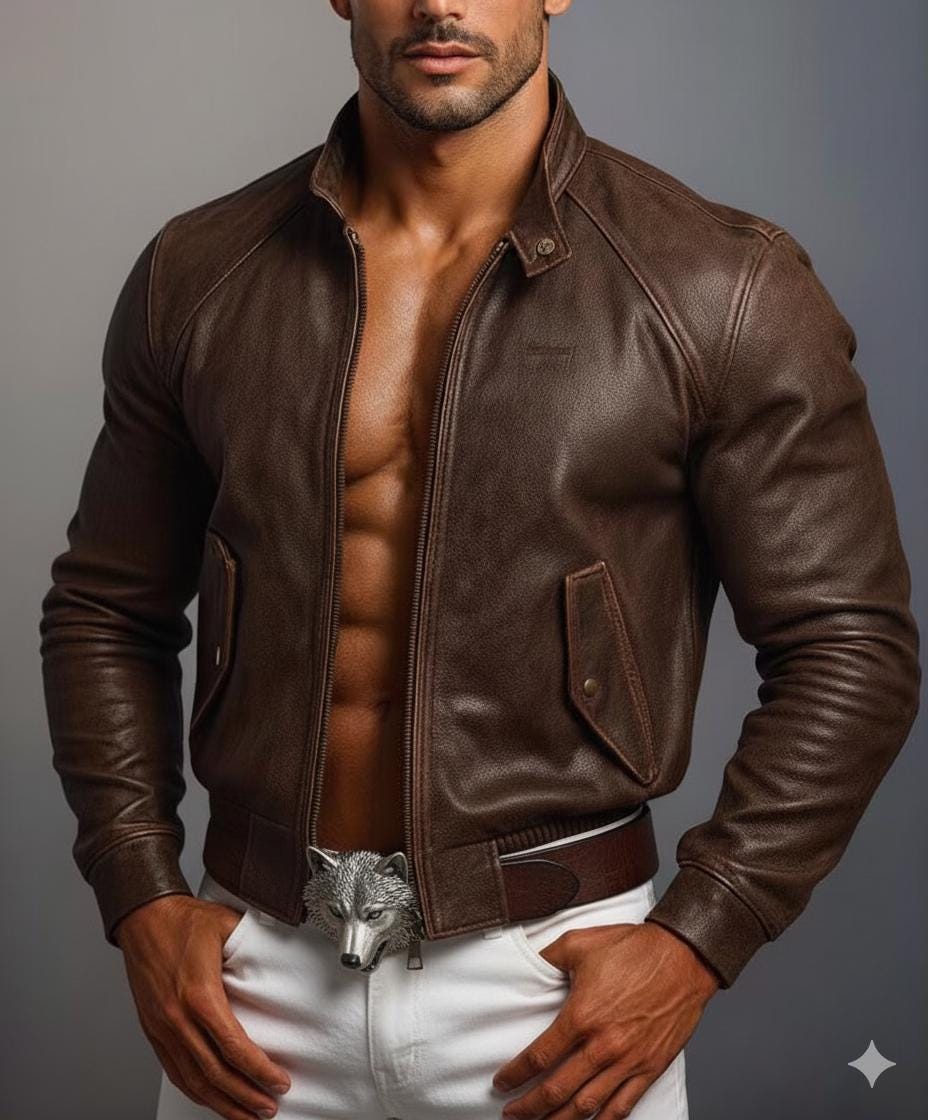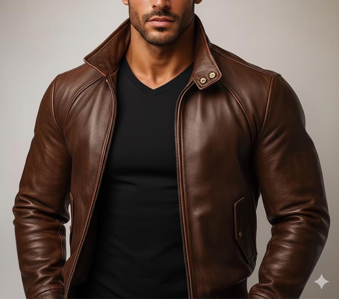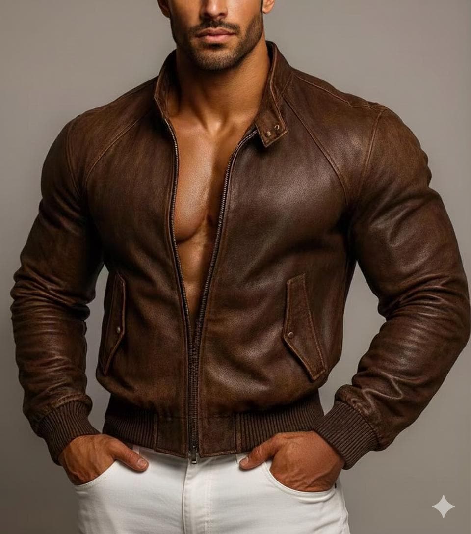 AG GROUPS Men's Brown Distressed Leather Bomber Jacket Experience timeless, rugged style with the AG GROUPS distressed leather bomber jacket. Crafted from genuine sheepskin leather, this jacket provides both durability for everyday wear and a soft, comfortable feel that molds to your body over time. It's the perfect blend of vintage biker aesthetic and classic aviator functionality. Key Features & Benefits Genuine Sheepskin Leather: Enjoy a soft, premium feel that is durable and develops a unique character and patina with every wear. Vintage Distressed Finish: The authentic brown distressed color gives a stylish, 'lived-in' look right from day one, perfect for a casual yet edgy style. Classic Bomber Style: Designed with a stand collar and ribbed cuffs and hem, this jacket offers a structured fit and excellent wind resistance. Practical Storage: Features two exterior flap pockets and two internal pockets (including a mobile pocket) for secure and convenient storage of your essentials. Comfortable Lining: Lined with a soft, skin-friendly inner material (typically polyester or viscose) for added warmth and comfort, making it easy to slip on and off. High-Quality Hardware: Built with durable, trusted YKK branded zippers for secure fastening and long-lasting performance. Care Instructions To maintain the quality and longevity of your leather jacket: Clean only by leather and fur specialists. Apply a quality leather conditioner periodically to keep the leather supple and protected. Avoid prolonged exposure to direct sunlight or harsh chemicals. Discover the full range of jackets and accessories from AG GROUPS in our shop!