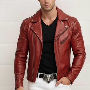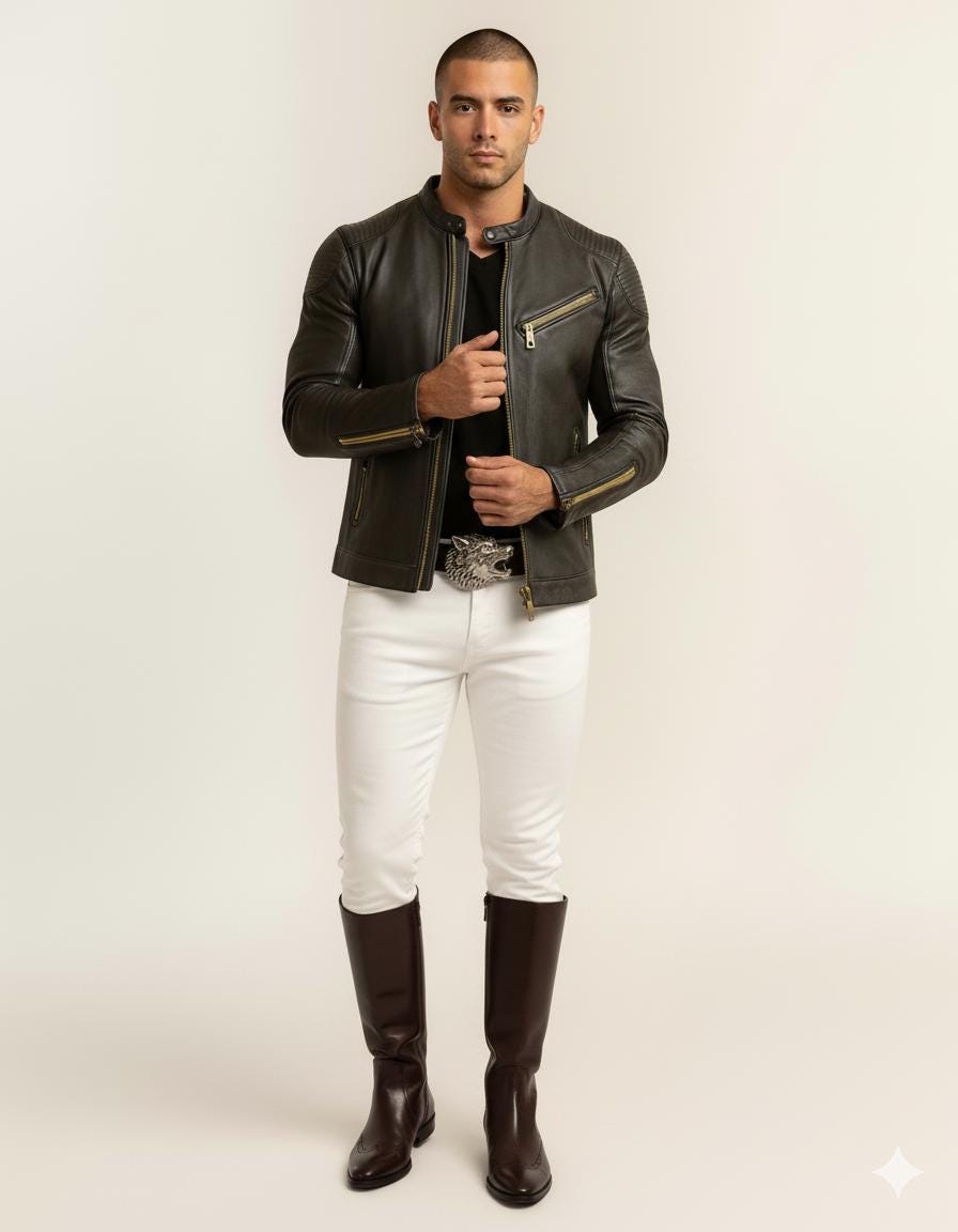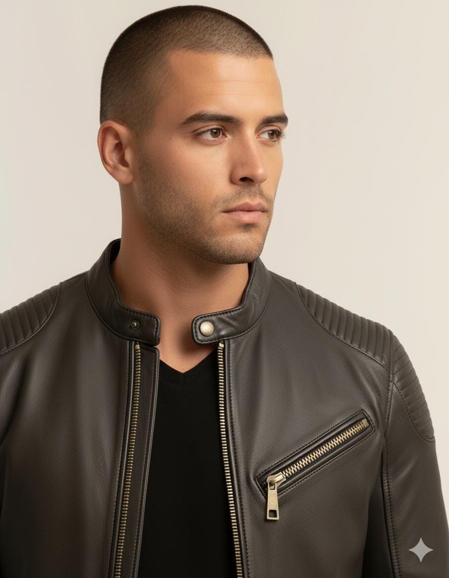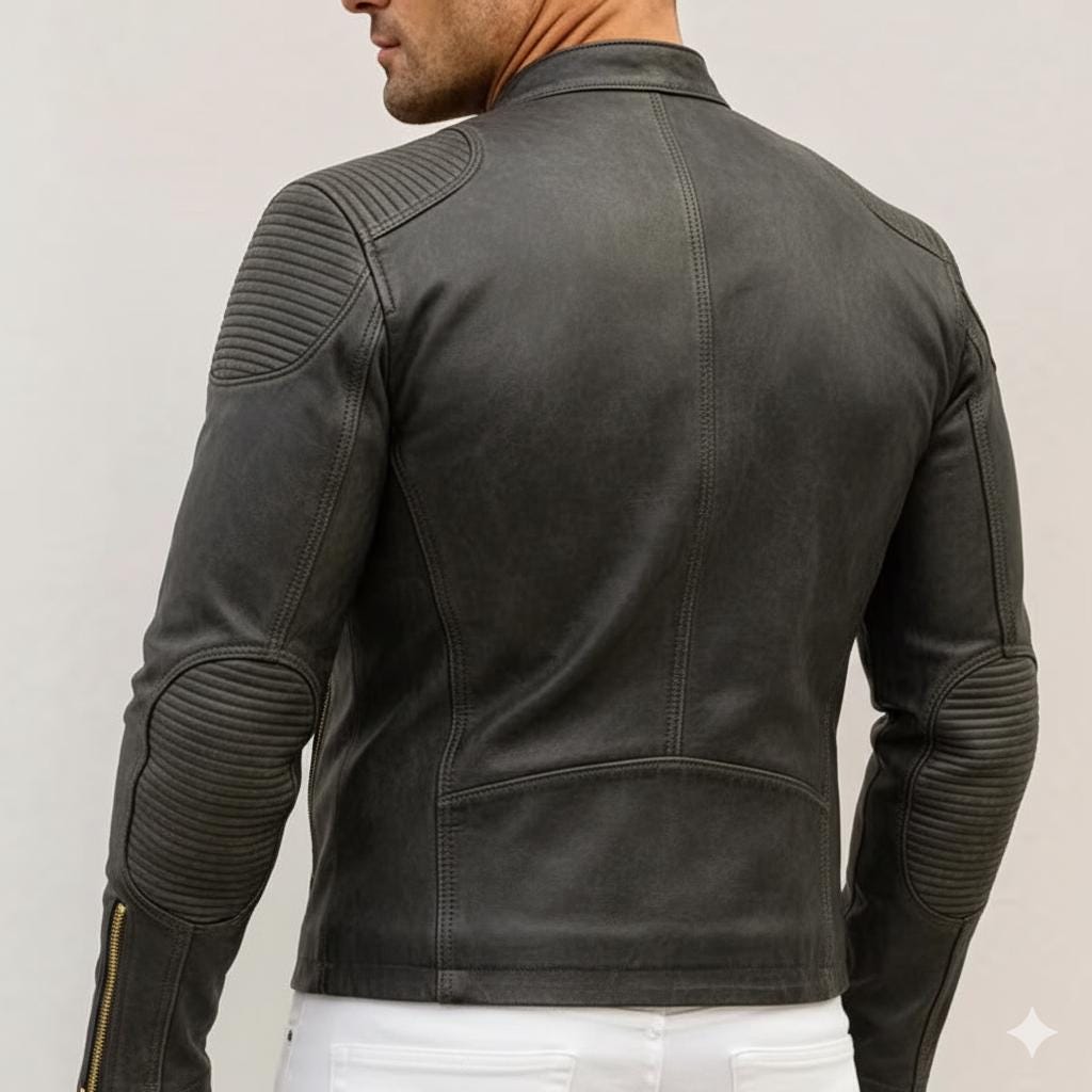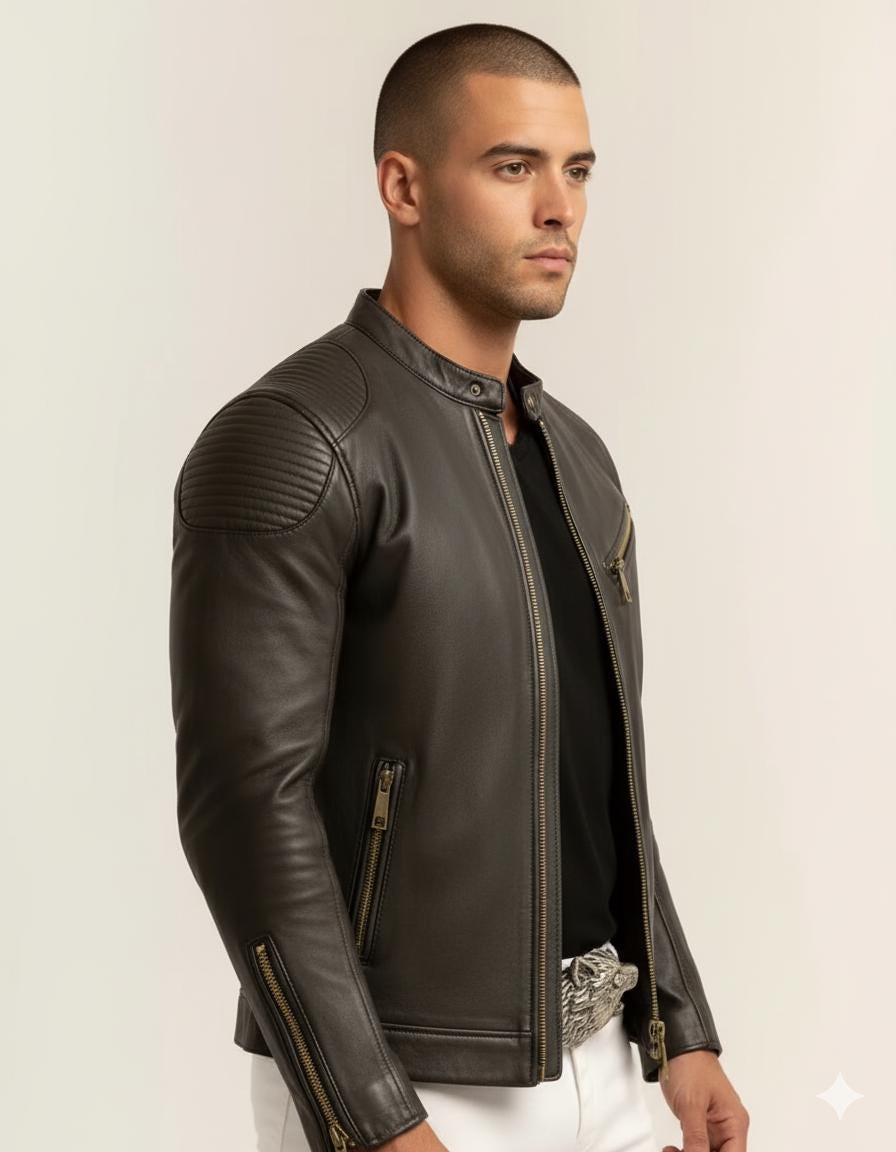 Elevate your style with the AG Groups Men's Black Leather Biker Jacket, a premium piece designed for the modern man. This jacket combines classic motorcycle aesthetics with a sleek, tailored fit, featuring striking gold hardware and sophisticated quilted details. Crafted from genuine, soft lambskin leather, it promises both exceptional style and lasting comfort. Key Features Brand: AG Groups Style: Biker / Moto Racer / Cafe Racer Color: Deep Black Hardware: Premium Gold-Tone Zippers and Accents Material: 100% Genuine Lambskin Leather Fit: Slim Fit (Please refer to size chart for best fit) Details: Quilted paneling on shoulders and elbows; stand-up collar with snap closure; multiple exterior zipper pockets; zipper cuffs. Why Choose AG Groups? At AG Groups, we pride ourselves on delivering superior craftsmanship and attention to detail. This jacket is designed not just as outerwear, but as a statement piece that offers versatility and edge to any wardrobe, whether you're hitting the open road or the city streets. Sizing and Fit This jacket is designed for a slim, contemporary fit. We strongly recommend checking our detailed size chart in the images section before ordering to ensure the perfect fit. If you prefer a more relaxed fit, consider ordering one size up. Care Instructions To maintain the quality of your genuine leather jacket, we recommend professional leather dry cleaning only. Store on a wide hanger in a cool, dry place away from direct sunlight.