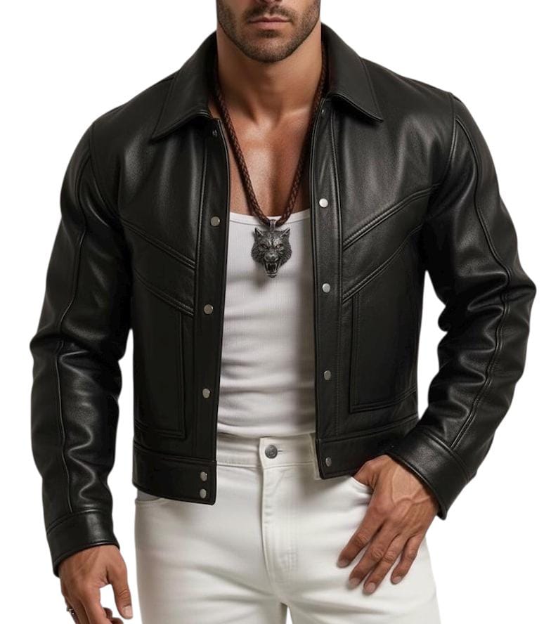 Men's Black Lambskin Leather Cropped Jacket – Western Biker Style Slim Fit