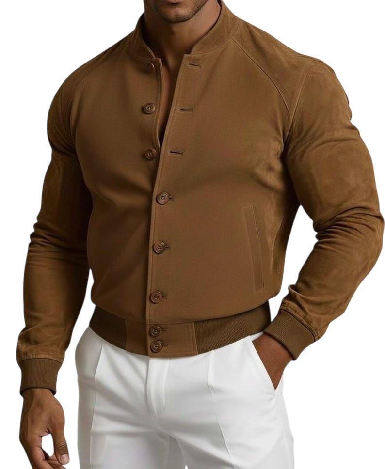 Men's Tan Suede Bomber Jacket | Slim Fit Button-Front Biker Style