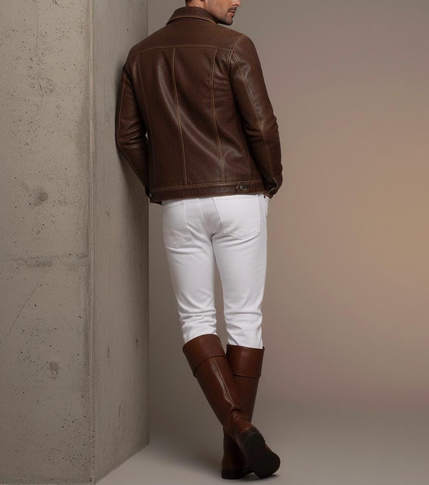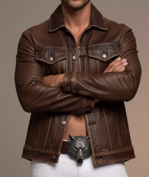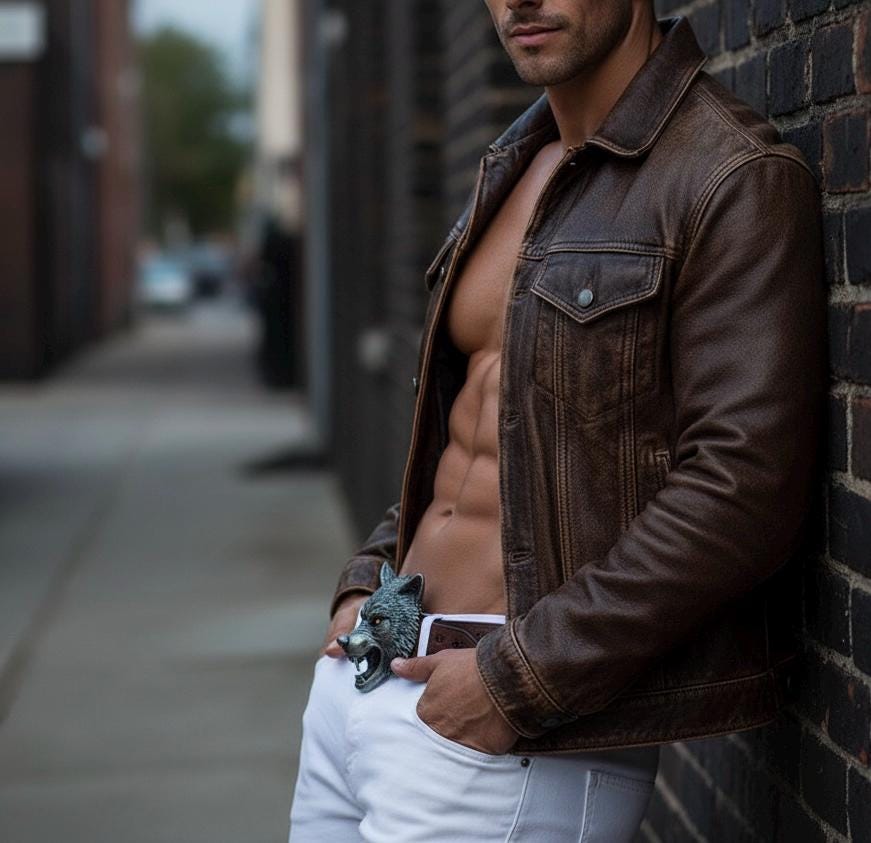 AG GROUPS Black Leather Trucker Jacket | Mens Biker Style | Genuine Sheepskin & Optional Wolf Buckle Elevate your style with the AG GROUPS Men's Black Leather Trucker Jacket, a perfect blend of classic ruggedness and modern sophistication. Crafted from 100% genuine, premium sheepskin, this jacket offers a soft, supple feel while ensuring durability and comfort for everyday wear. Our iconic trucker design features timeless details that stand out, making it a versatile wardrobe investment that never goes out of style. This piece can be paired effortlessly with jeans for a laid-back look or layered over a tailored shirt for a sharper edge. Optional Accessory: Complete the look with our striking, vintage-style Wolf Head Belt Buckle. Made from a high-quality, durable alloy, this unique accessory symbolizes strength and wilderness, adding a bold statement to your outfit. Product Features Brand: AG GROUPS Outer Shell: 100% Genuine Premium Sheepskin Leather Inner Lining: Soft, skin-friendly polyester lining for maximum comfort Closure: Classic button-up front closure Collar: Traditional shirt-style collar Pockets: Two button-flap chest pockets Two convenient side pockets Two inside pockets (including one for a phone/essentials) Cuffs: Buttoned cuffs Color: Distressed Black (natural variations in genuine leather may occur) Design Details: Classic paneling, sleek finish, and streamline stitching Seasonality: Suitable for year-round wear Care Instructions To maintain the quality of your leather jacket, wipe dirt with a soft, damp cloth. Do not wash with water. Do not tumble dry or iron. Do not dry clean. Hang the jacket after use to allow it to air out. Sizing & Customization Please refer to our size chart in the image gallery before purchasing for the perfect fit. We also offer custom (made-to-measure) services to tailor the jacket to your specific requirements. Contact us for details!