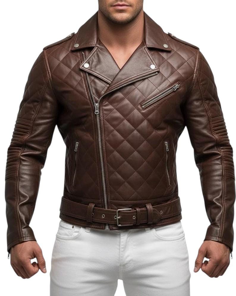 Men's Brown Quilted Leather Biker Jacket | AG GROUPS