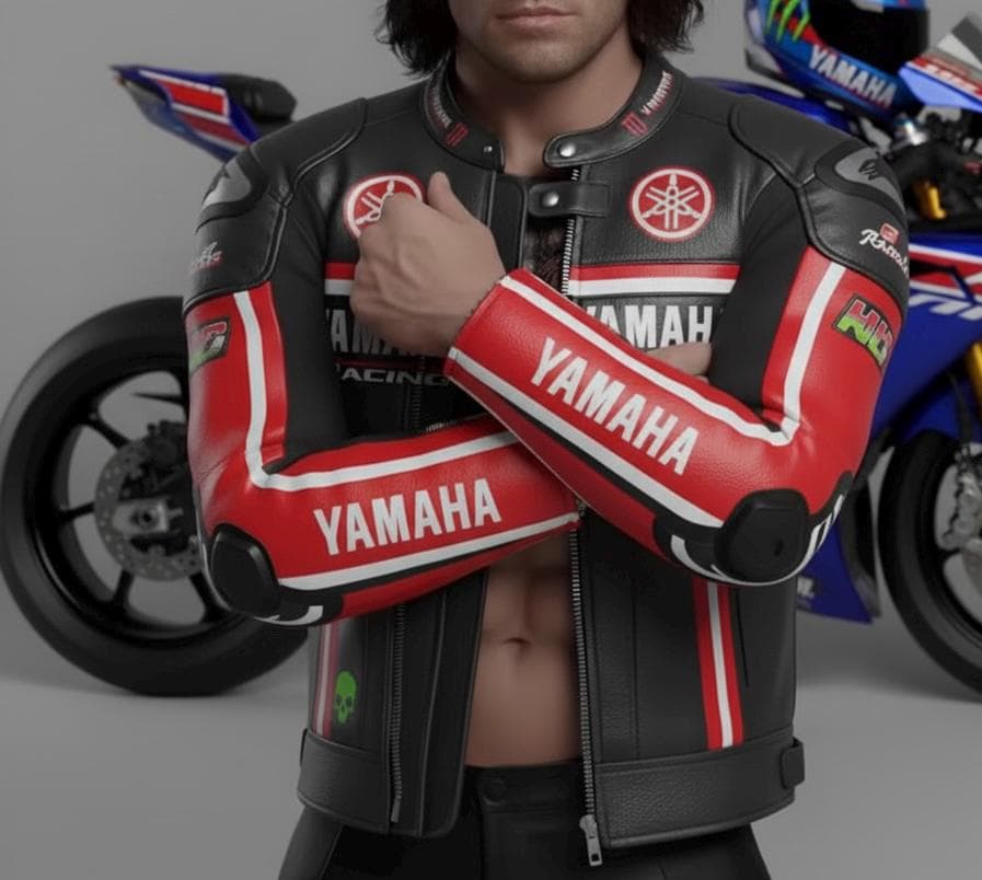 Ride in style and safety with this premium AG Groups replica Yamaha racing jacket. Designed for the passionate biker and track enthusiast, this jacket combines iconic style with durable protection. Perfect for R1 and R6 owners and fans of the Yamaha Racing team. Key Features Premium Material: Crafted from high-quality genuine cowhide leather for maximum durability and protection [4, 25]. Iconic Design: Features classic red, black, and white colors with authentic Yamaha logos and racing livery [1, 11]. Protective Gear: Equipped with CE-approved internal protectors (Level 2 recommended) in the shoulders, elbows, and back for optimal safety while riding [4]. Comfort & Fit: Designed as professional riding gear, offering a comfortable fit for both casual street riding and track days. Handmade Quality: Each jacket is handmade with attention to detail, ensuring a unique and quality product [3, 27]. Customization Options We offer full customization! Want a different color scheme, specific text, or a tailored fit? Message us directly to discuss your personalized motorbike jacket needs [11, 23]. Sizing & Care Please refer to our sizing chart image before purchasing to ensure the best fit. Leather cleaning instructions will be included with your order. Disclaimer: This jacket is intended for motorcycle riding and contains protective elements. Always prioritize safety while operating a motorcycle.