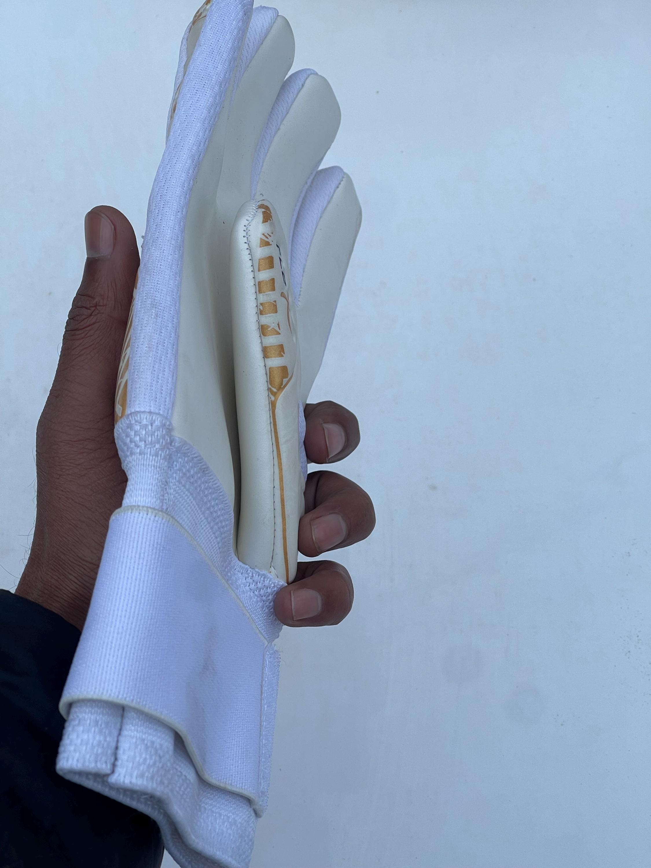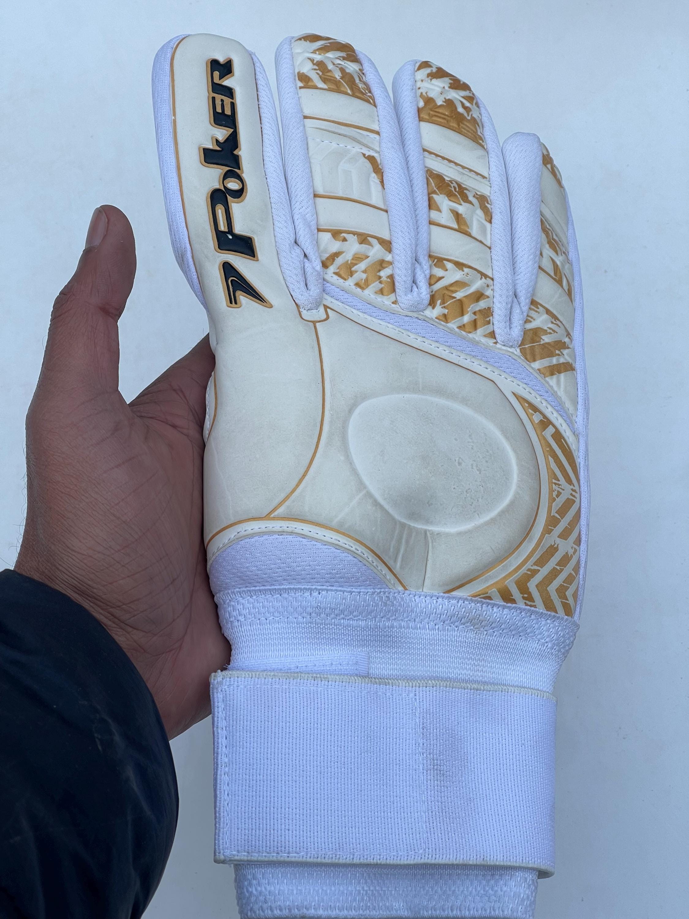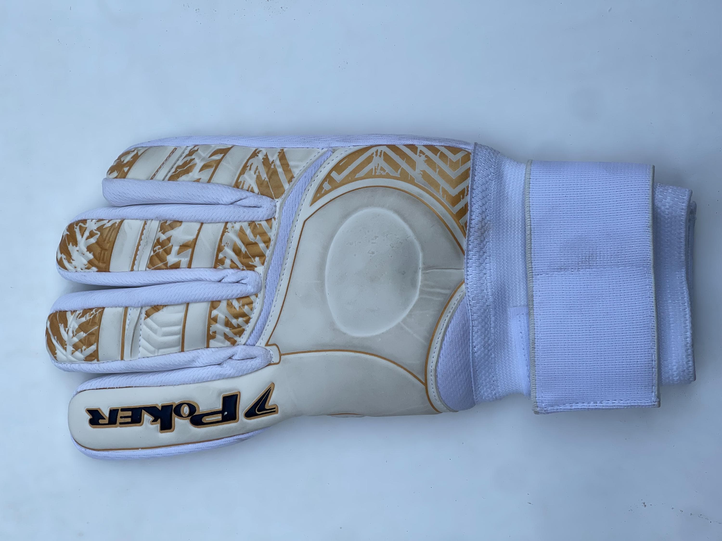 Command your box with confidence in these professional-grade Poker Firmness III goalkeeper gloves. Designed for serious goalkeepers, this model combines top-tier materials with innovative technology to provide an exceptional grip, comfort, and durability in all conditions. Color: White and Gold Sport: Soccer / Football (Field) Intended Use: Match Play & High-Level Training Key Features: Superior Grip Palm: The 3mm 100% natural German latex palm provides a sticky, reliable grip on the ball in both wet and dry weather, ensuring secure catches every time. Impact Absorption: An additional 3mm of internal foam padding works to cushion hard shots, reducing impact force and keeping your hands protected during intense play. Enhanced Fit & Control: The classic Flat Cut (Corte Reto) design offers a comfortable, slightly looser feel with a large contact area on the ball. The "Garra System Ultra" technology enhances the natural curvature of your hand for a better, more fixed feel on the ball. Durable Backhand: The backhand is made from a highly resistant "Super Grip" synthetic latex material designed for increased durability and longevity, especially during punching the ball. Increased Flexibility & Ventilation: "Flex" technology prioritizes hand mobility, allowing for natural movement, while special mesh weaving in the fabric facilitates air flow to keep your hands cool and dry during a match. Secure Closure: Features a full-wrap elasticated wrist strap with a strong Velcro closure for optimal wrist support and a secure, customizable fit. Whether you are playing a competitive match or training hard, these gloves offer the performance and protection you need to make big saves. "MINIMUM ORDER REQUIREMENT: Please note that we require a minimum purchase of 10 Gloves per order. Orders for a single ball cannot be fulfilled."