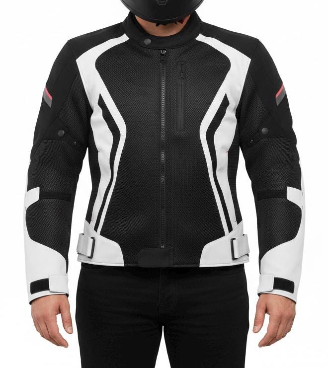 Komine Reflect Mesh Motorcycle Jacket This Komine brand jacket is designed for comfort and protection during your motorcycle rides, especially in warmer weather. The high-quality mesh construction ensures excellent airflow while built-in safety features offer peace of mind. Key Features: Breathable Design: Made with durable mesh panels for optimal ventilation on hot days Enhanced Visibility: Features reflective coating on the shoulders and arms to improve your visibility to others at night Protective Gear: Includes standard CE-rated protectors for the shoulders and elbows, plus back padding Adjustable Fit: Straps at the waist and cuffs allow you to customize the fit for maximum comfort. Versatile: Compatible with optional inner liners (sold separately) to extend its use into cooler seasons Materials & Construction Outer Shell: Polyester mesh and textile blend. Protectors: CE-certified armor (shoulders, elbows), EVA foam (back).