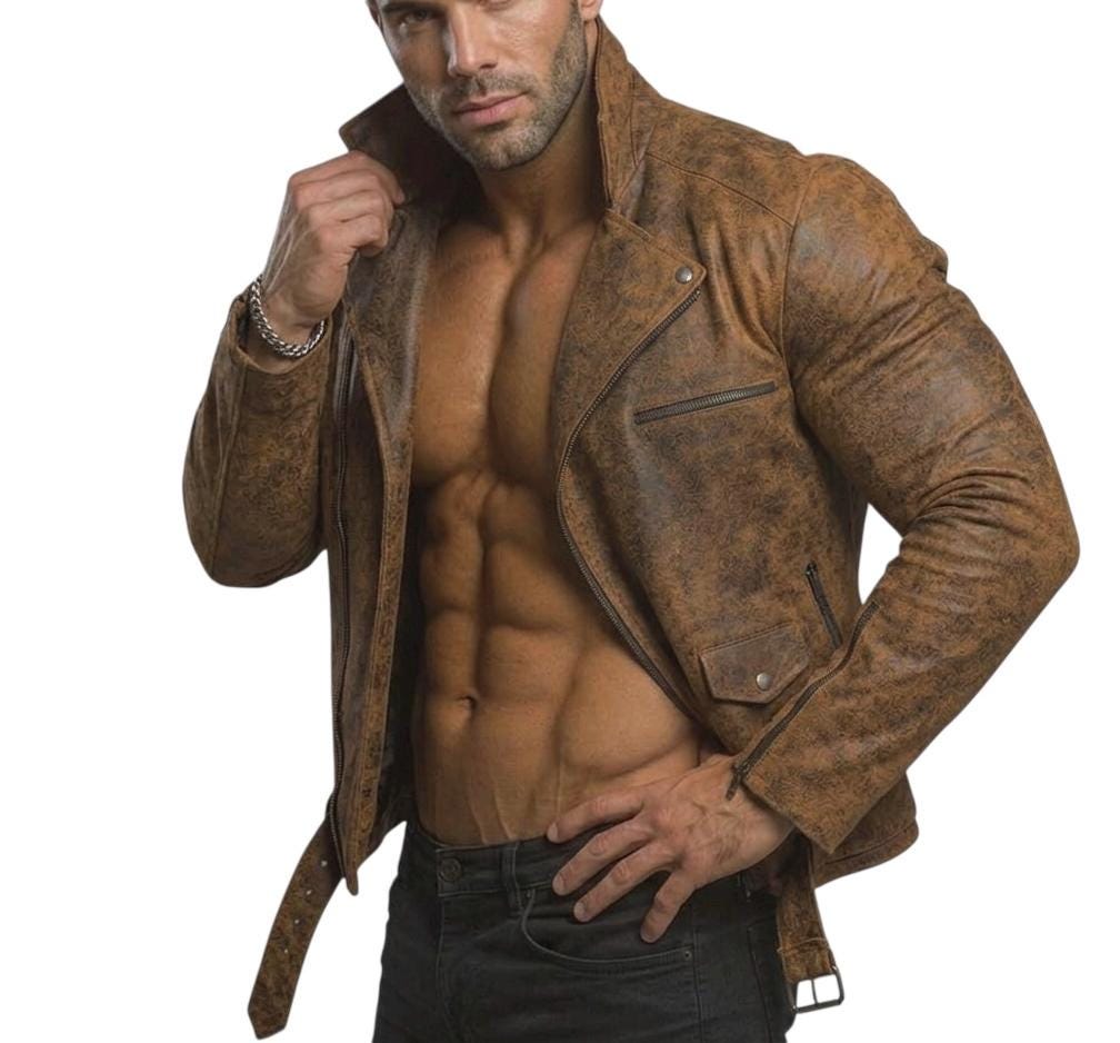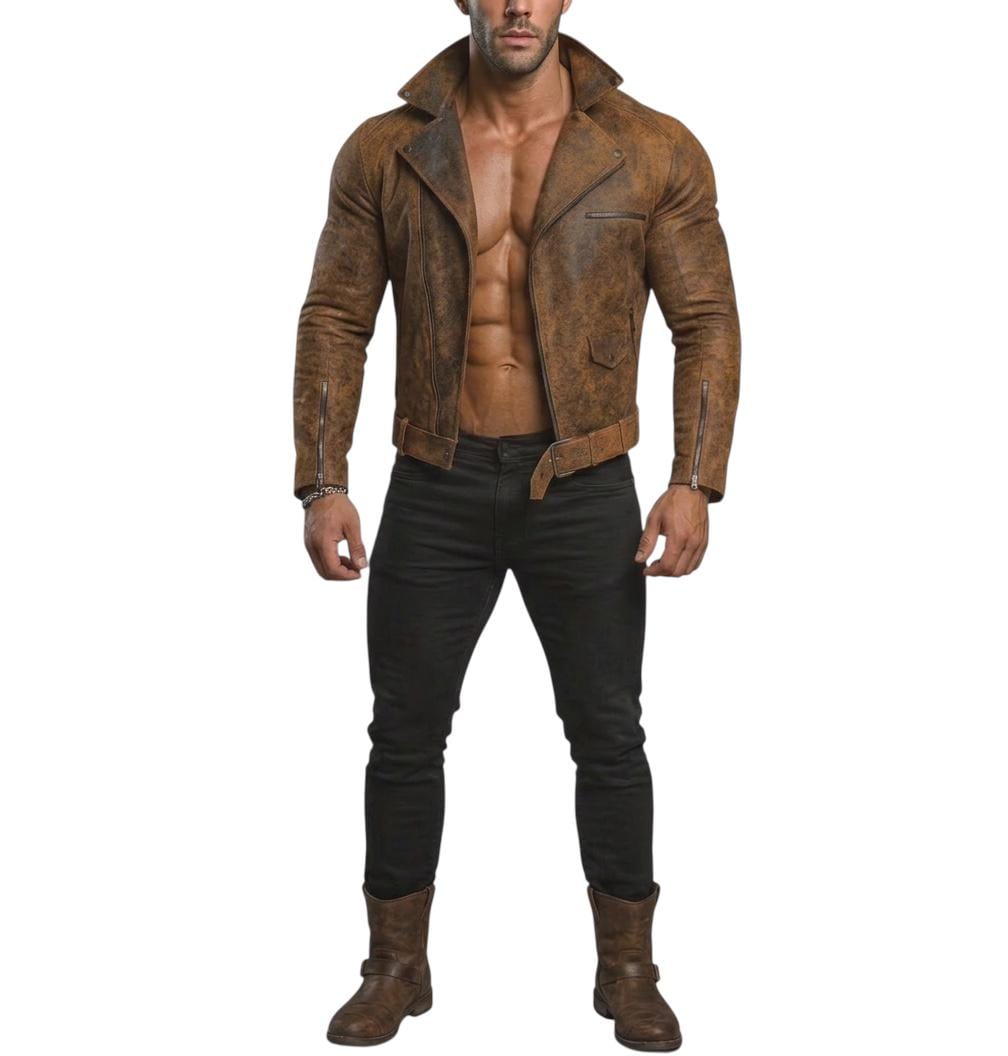 Elevate your style with this meticulously handcrafted Distressed Brown Leather Biker Jacket. Designed for the modern man who appreciates vintage aesthetics, this jacket features a unique "cracked" texture that adds character and a lived-in feel from day one.