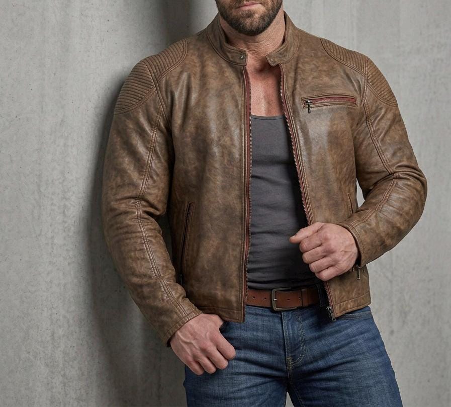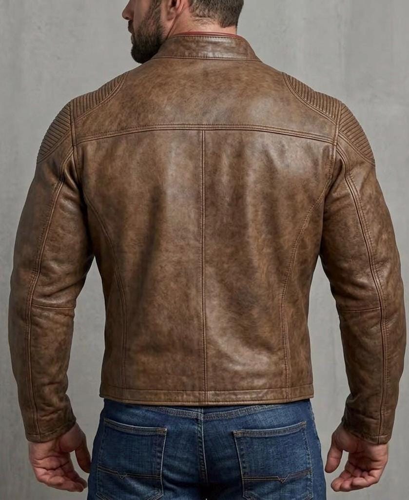Men's Handmade Distressed Brown Leather Cafe Racer Jacket - Slim Fit Vintage Biker Style