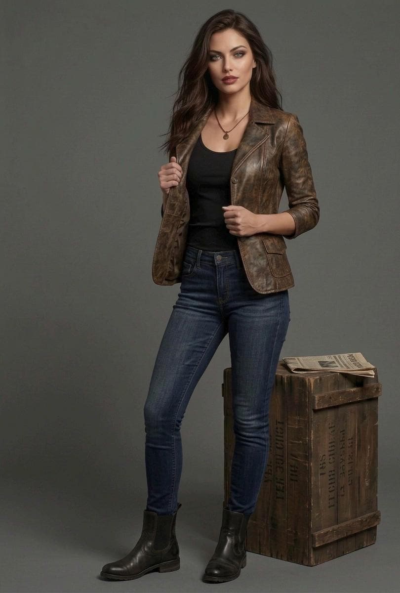 Your everyday style with this stunning Women's Vintage Brown Distressed Leather Blazer. Crafted for a timeless "lived-in" look, this tailored genuine leather jacket seamlessly bridges the gap between rugged western charm and modern office-ready sophistication.