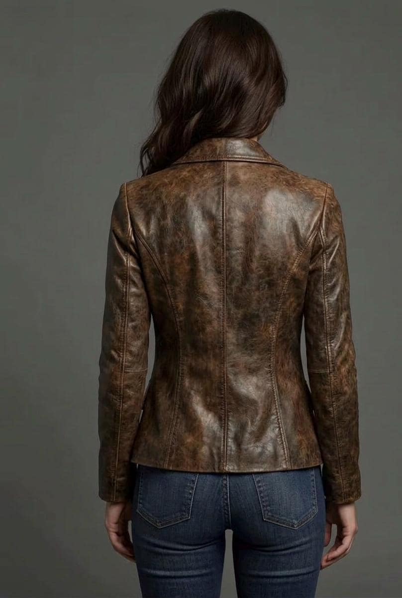 Women's Distressed Brown Leather Blazer – Tailored Retro Biker Jacket