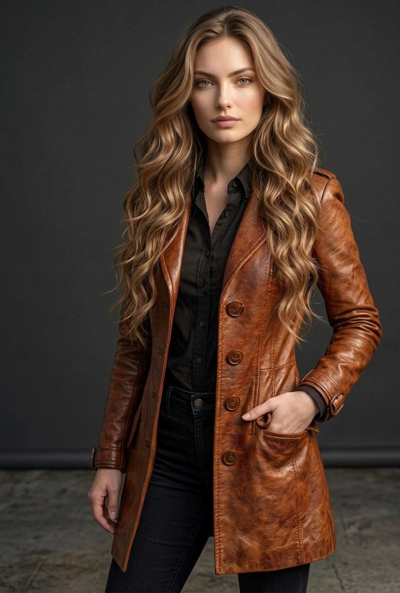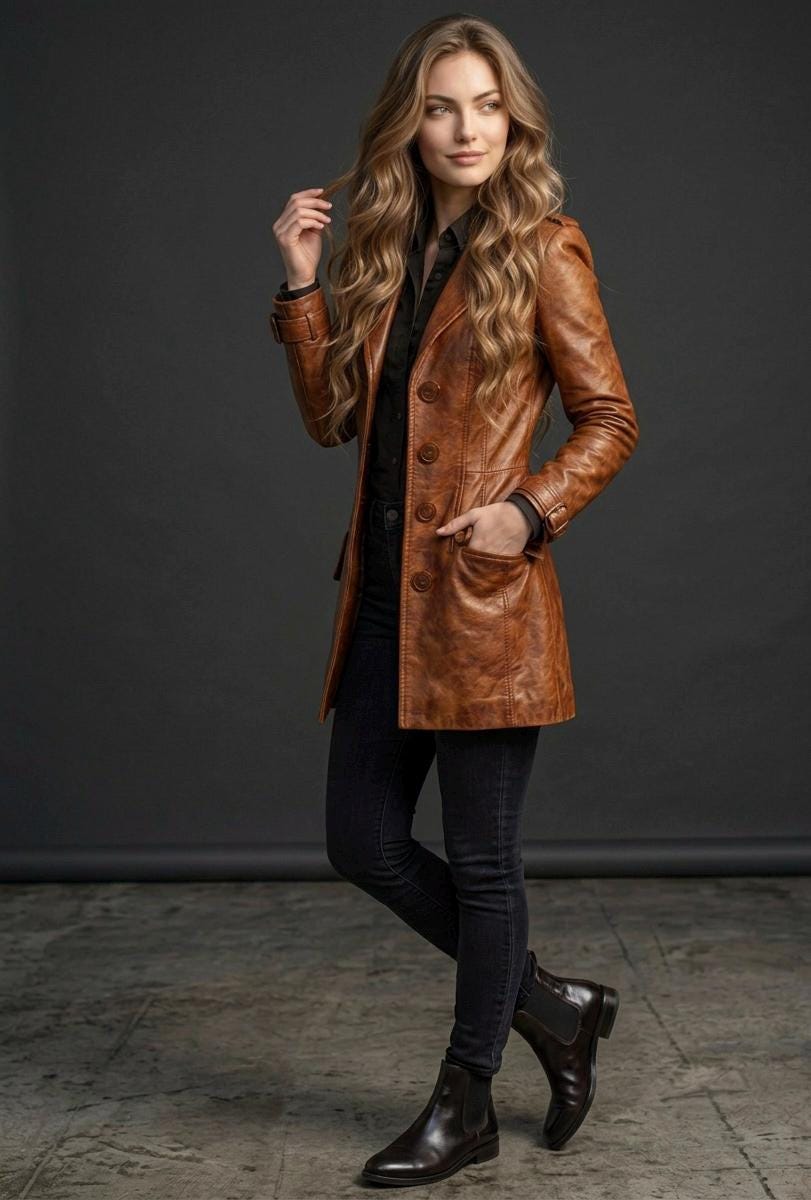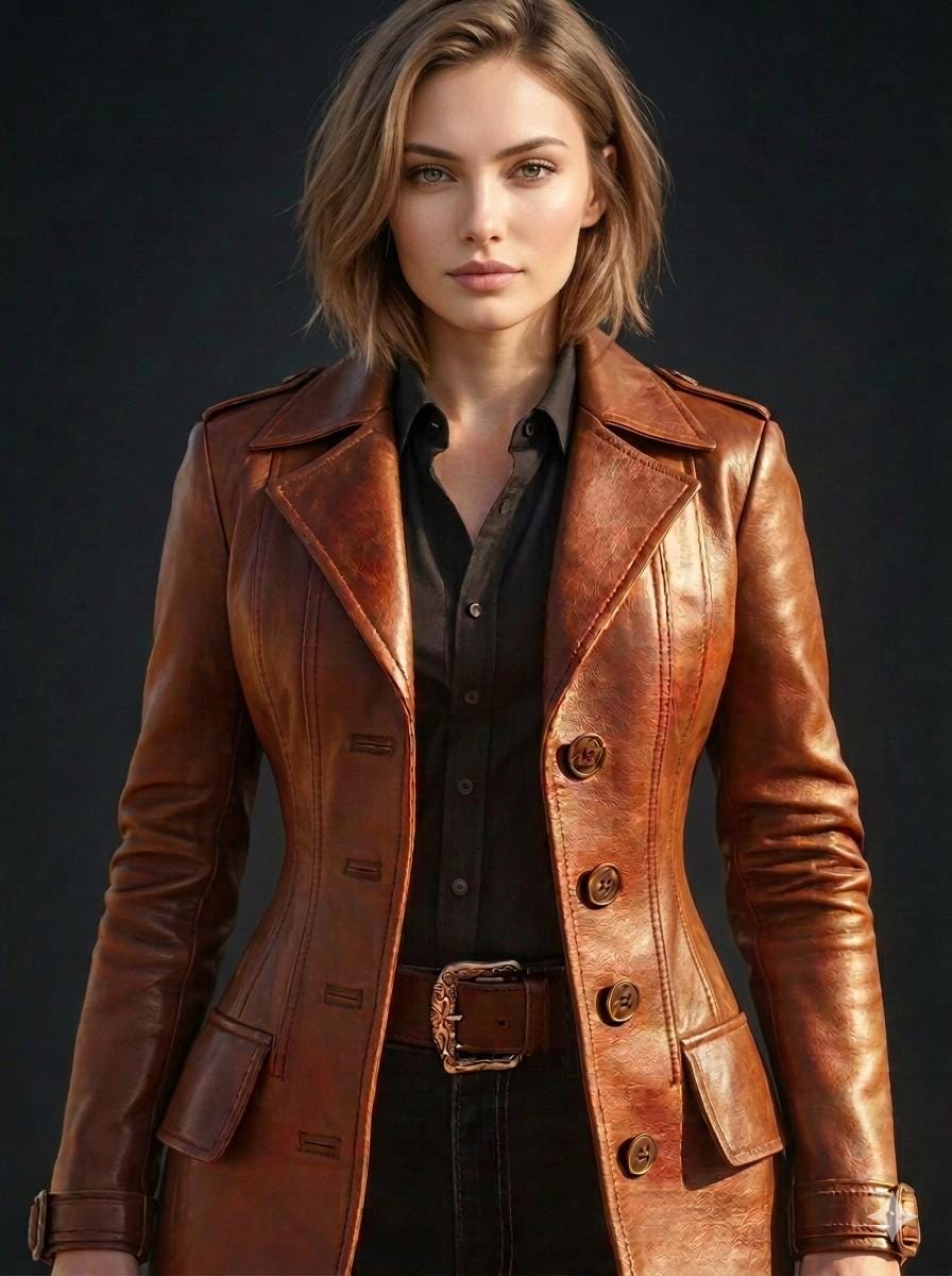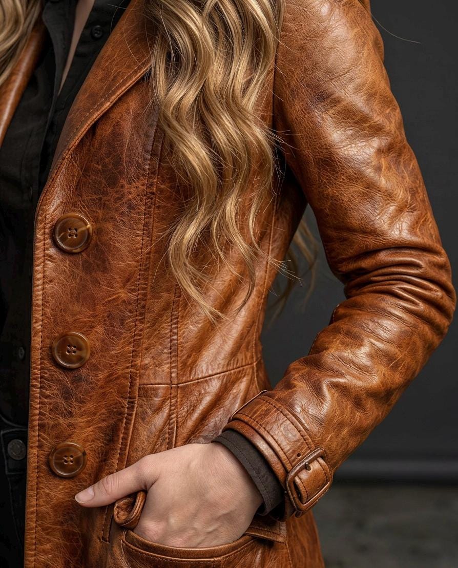 Make a bold statement with this stunning Women’s Distressed Brown Leather Jacket. Perfectly blending vintage charm with a modern silhouette, this mid-length blazer-style coat is a versatile staple for any season. Whether you're aiming for a "Dark Academia" aesthetic or a rugged-chic look, this jacket is your new go-to.