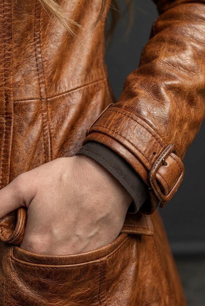 Style: Single-Breasted Leather Blazer / Mid-Length Coat