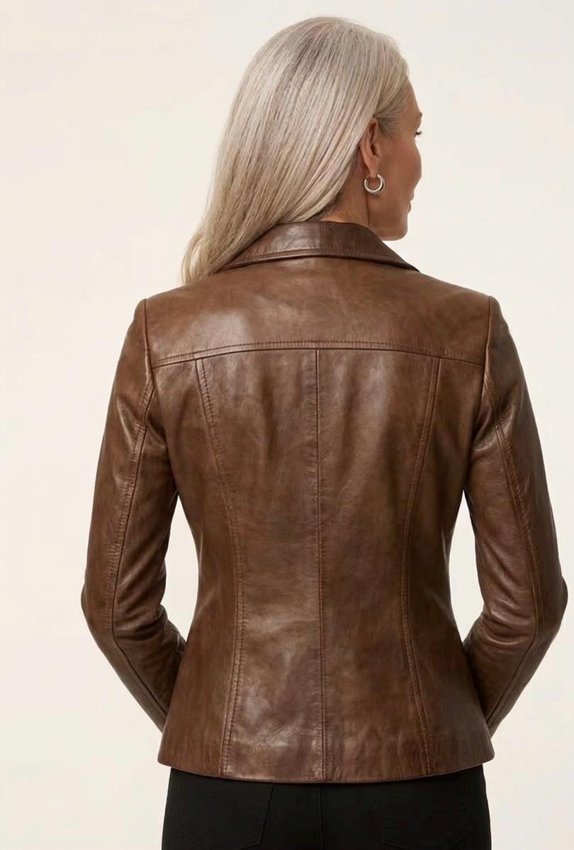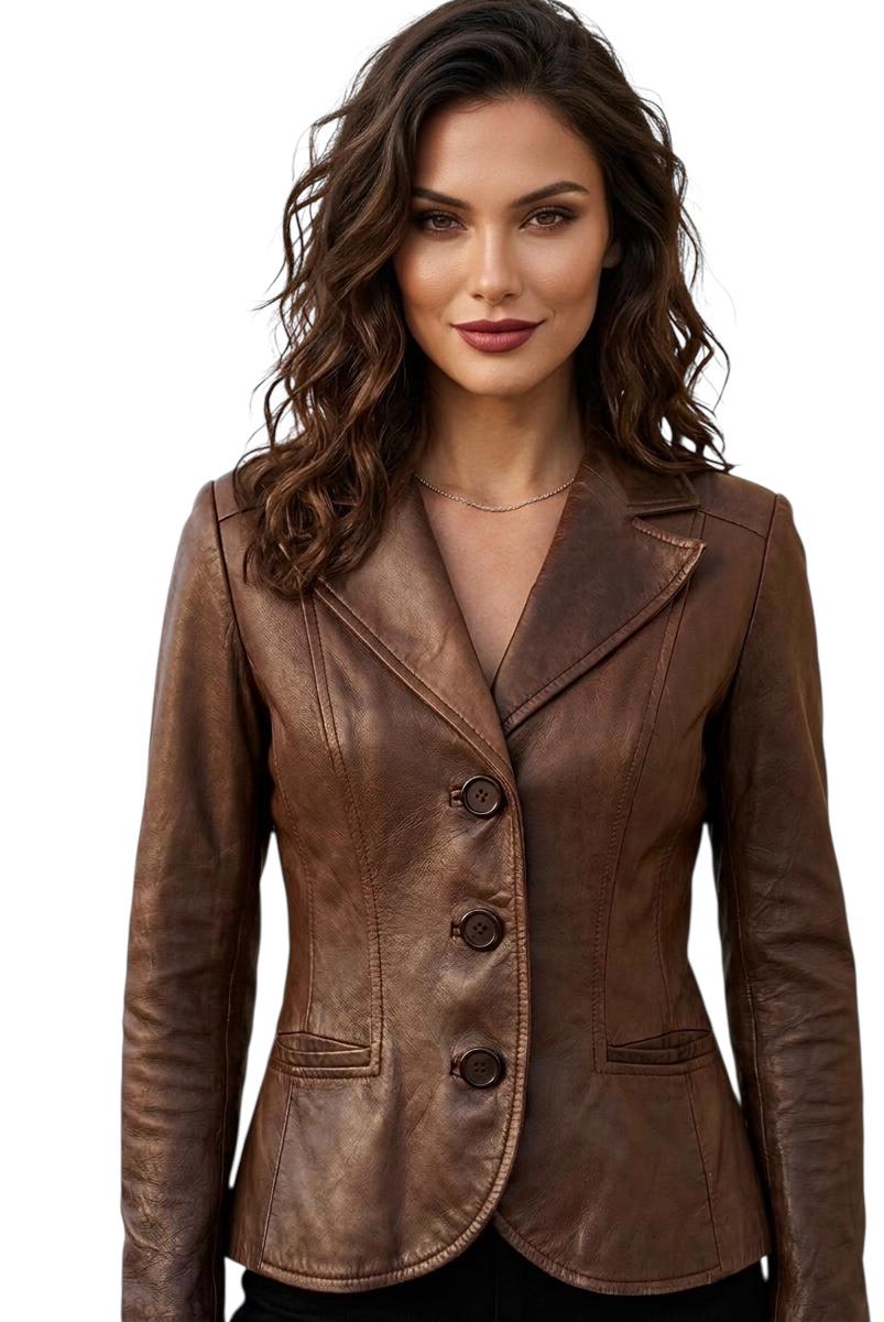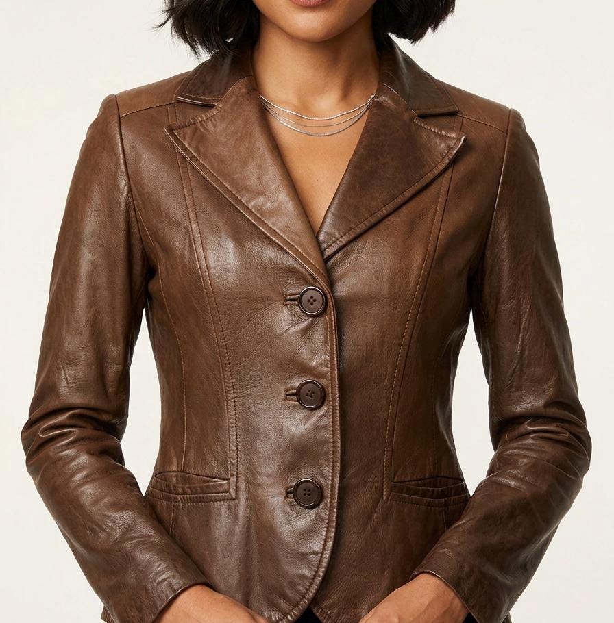 Brown Lambskin Leather Blazer Jacket – Vintage Style, Slim Fit Outerwear
