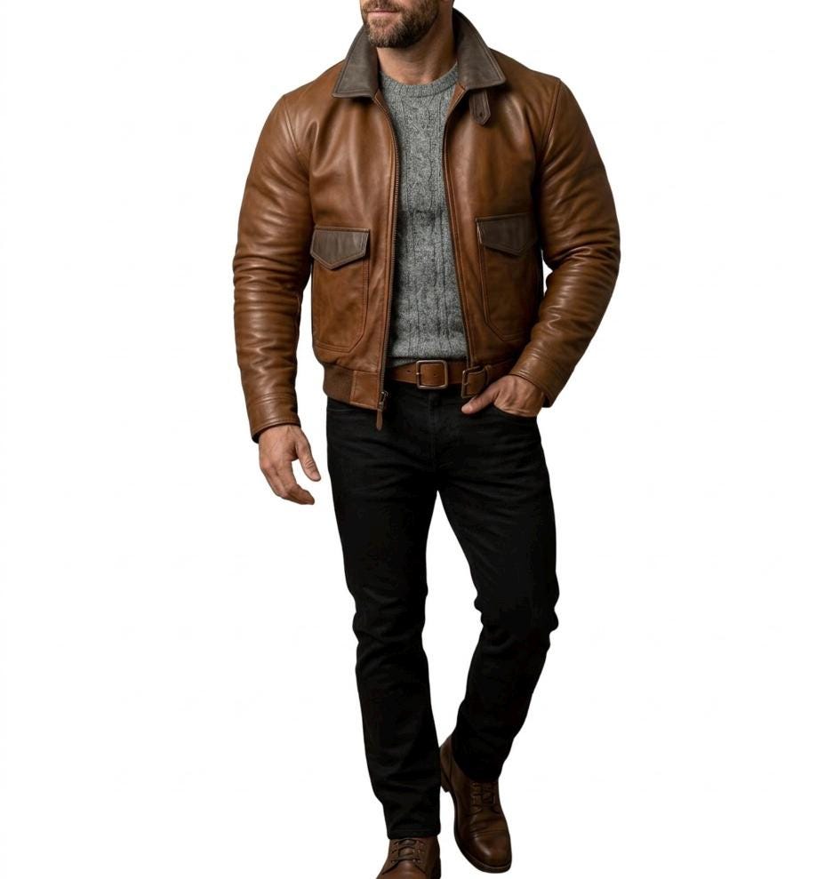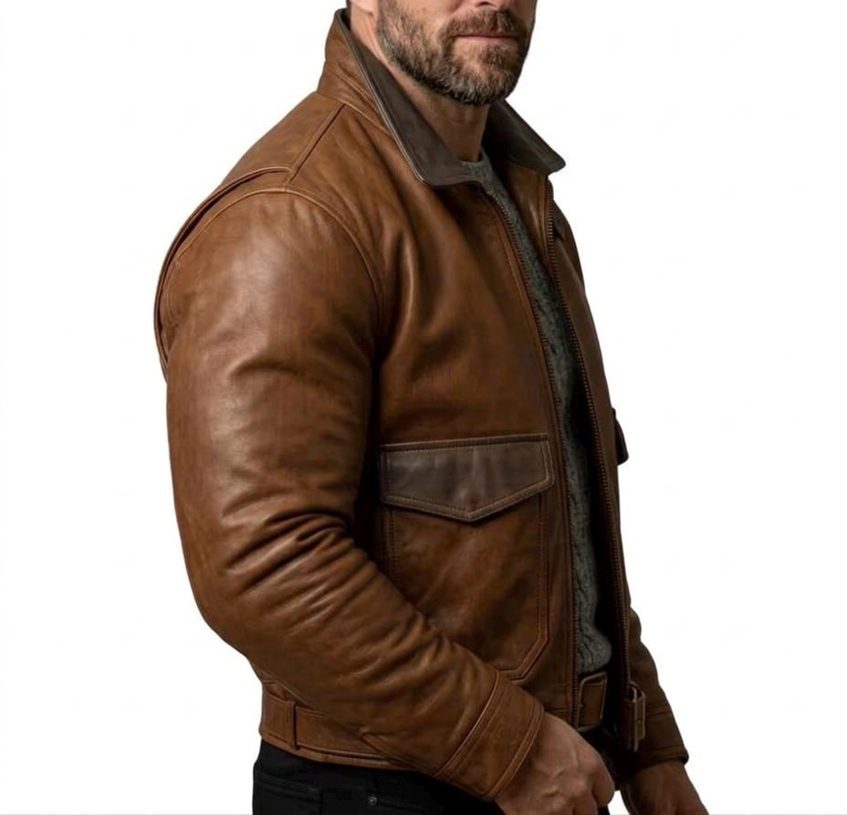 Men's Distressed Brown Genuine Leather A2 Aviator Bomber Jacket – Vintage Military Style
