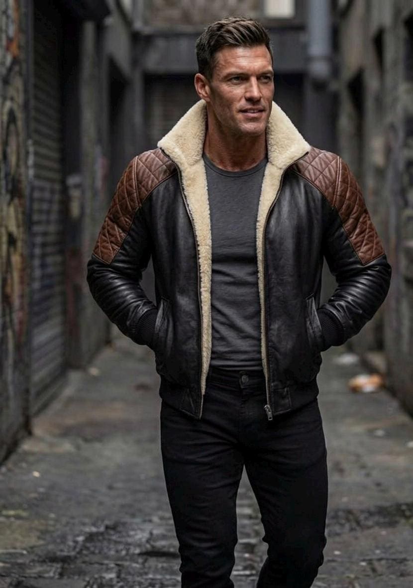 Step into the cold with confidence. This premium leather jacket combines the rugged heritage of a classic B3 flight jacket with modern biker aesthetics. Featuring striking contrast quilted shoulders and a plush faux-shearling lining, it’s designed for the man who demands both warmth and a sharp, masculine silhouette.
