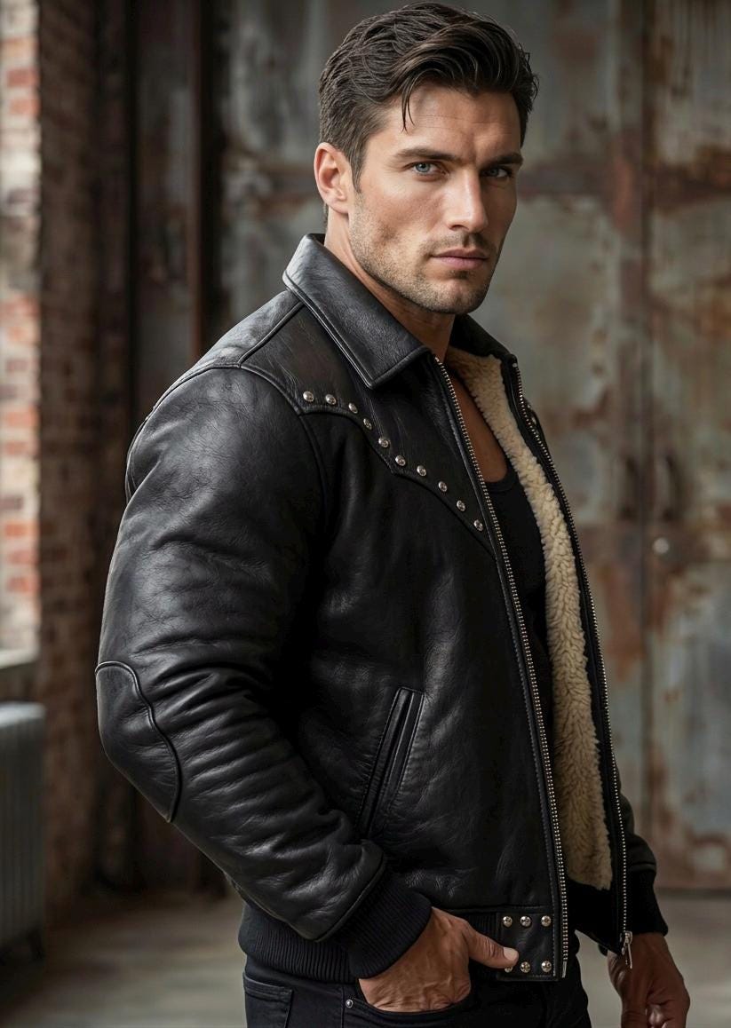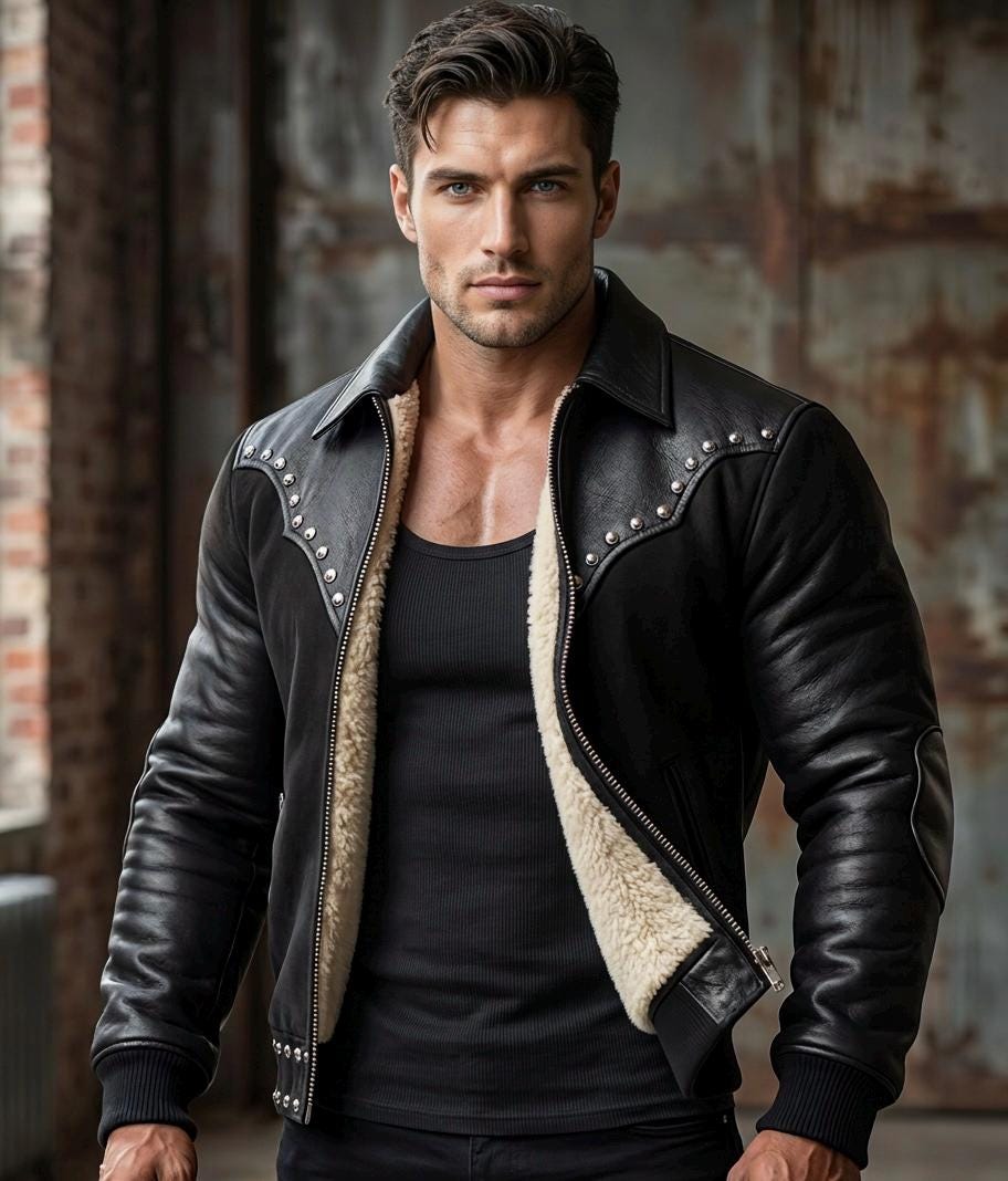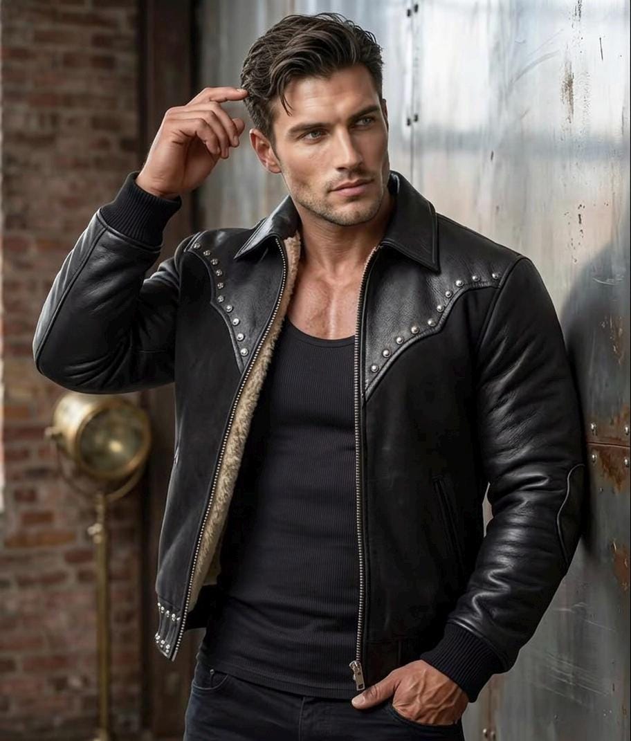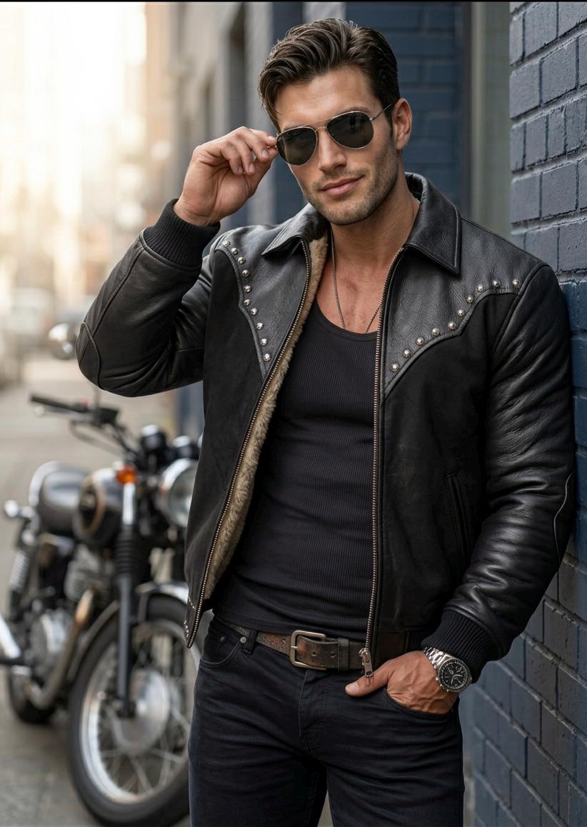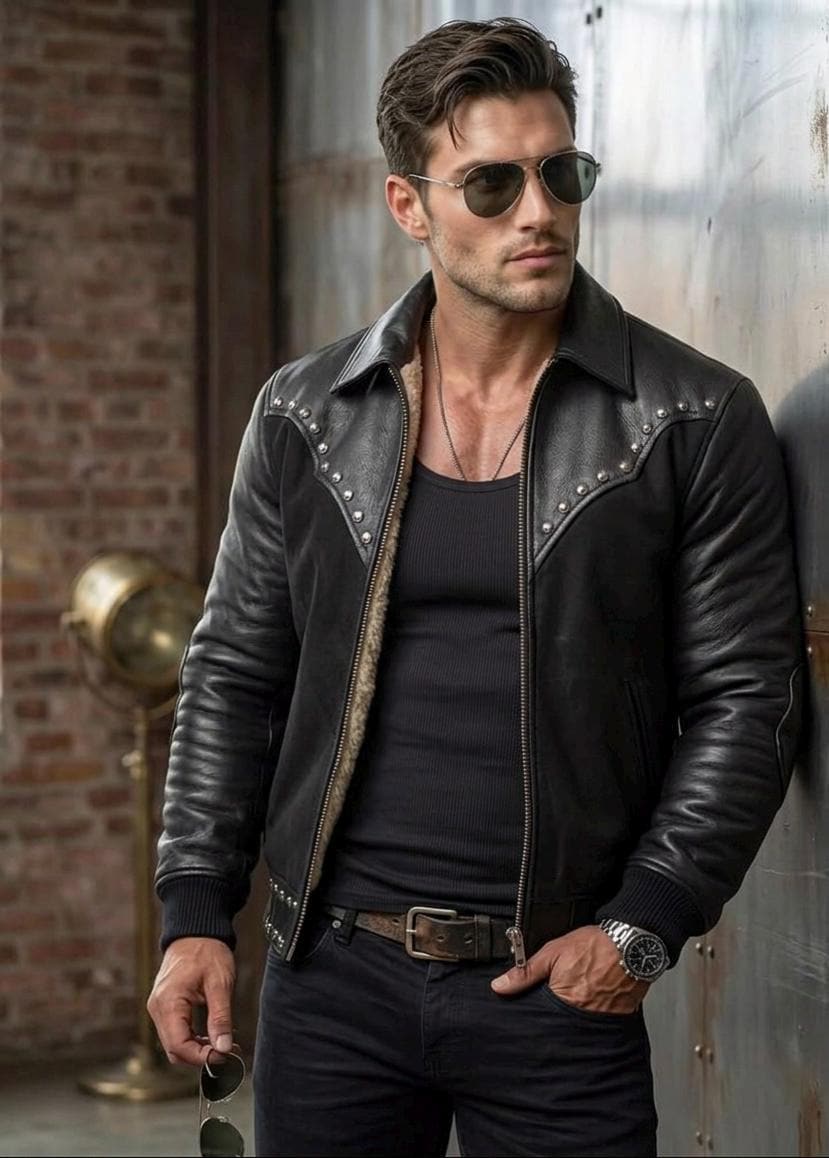 Turn heads with this masterfully crafted Studded Leather Biker Jacket. Combining the rugged spirit of the American West with a modern urban silhouette, this jacket is designed for the man who doesn’t follow trends—he sets them.