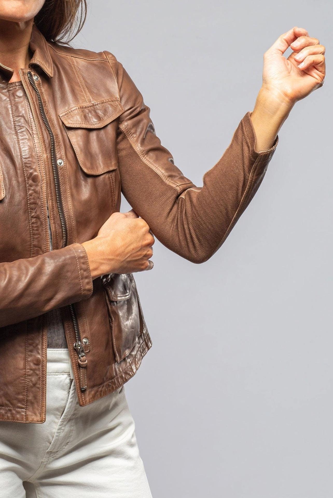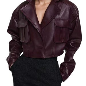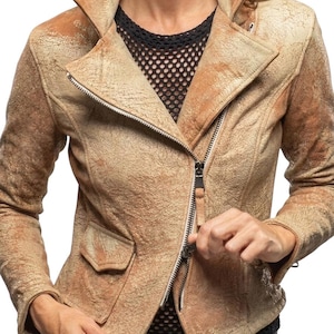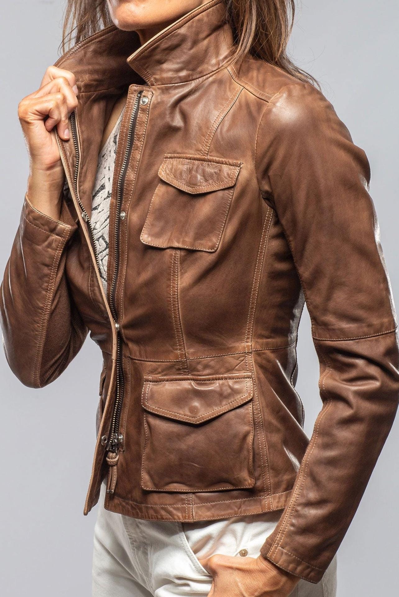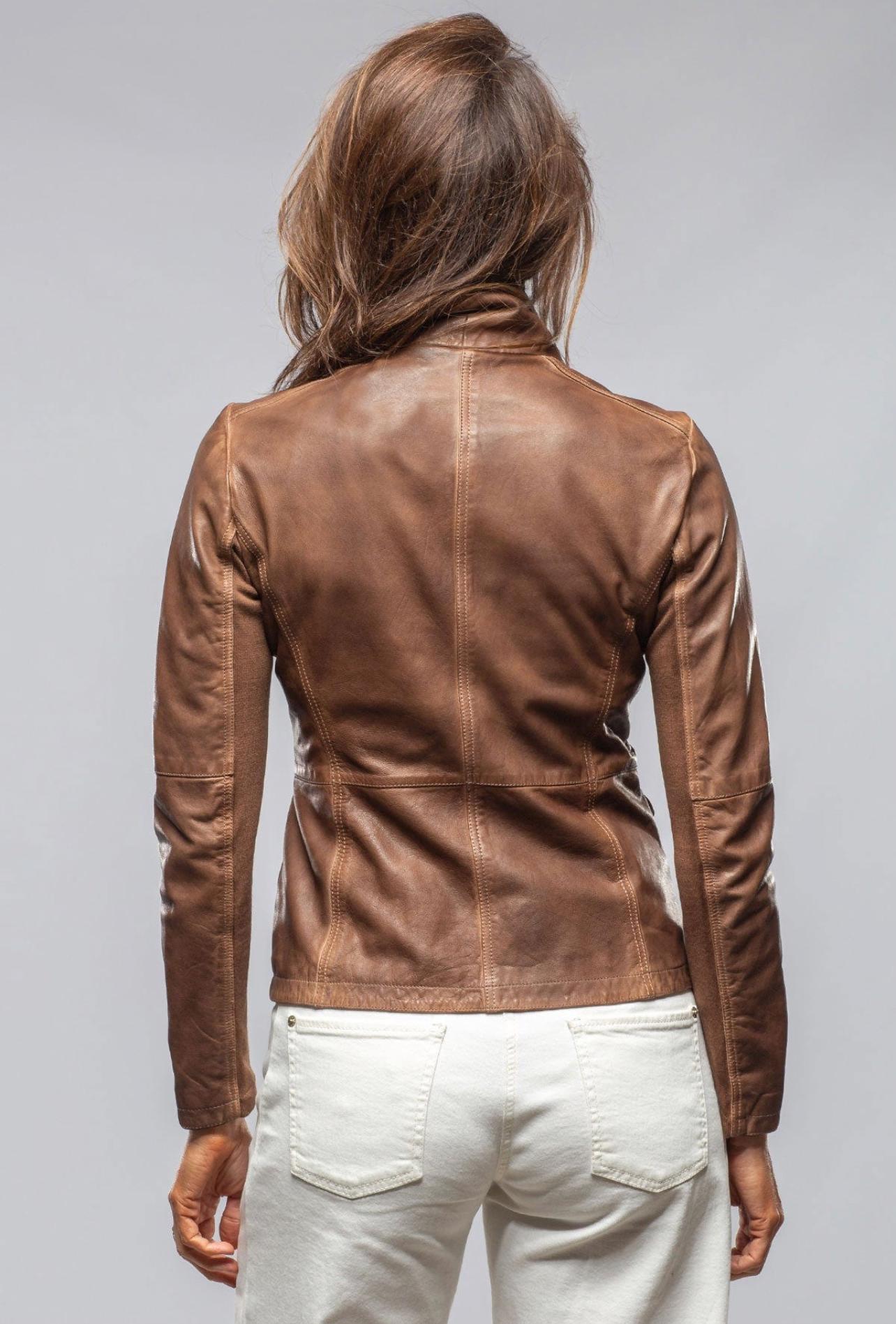 Vintage Distressed Brown Leather Jacket - Women’s Soft Lambskin Utility Biker Coat with 4 Pockets